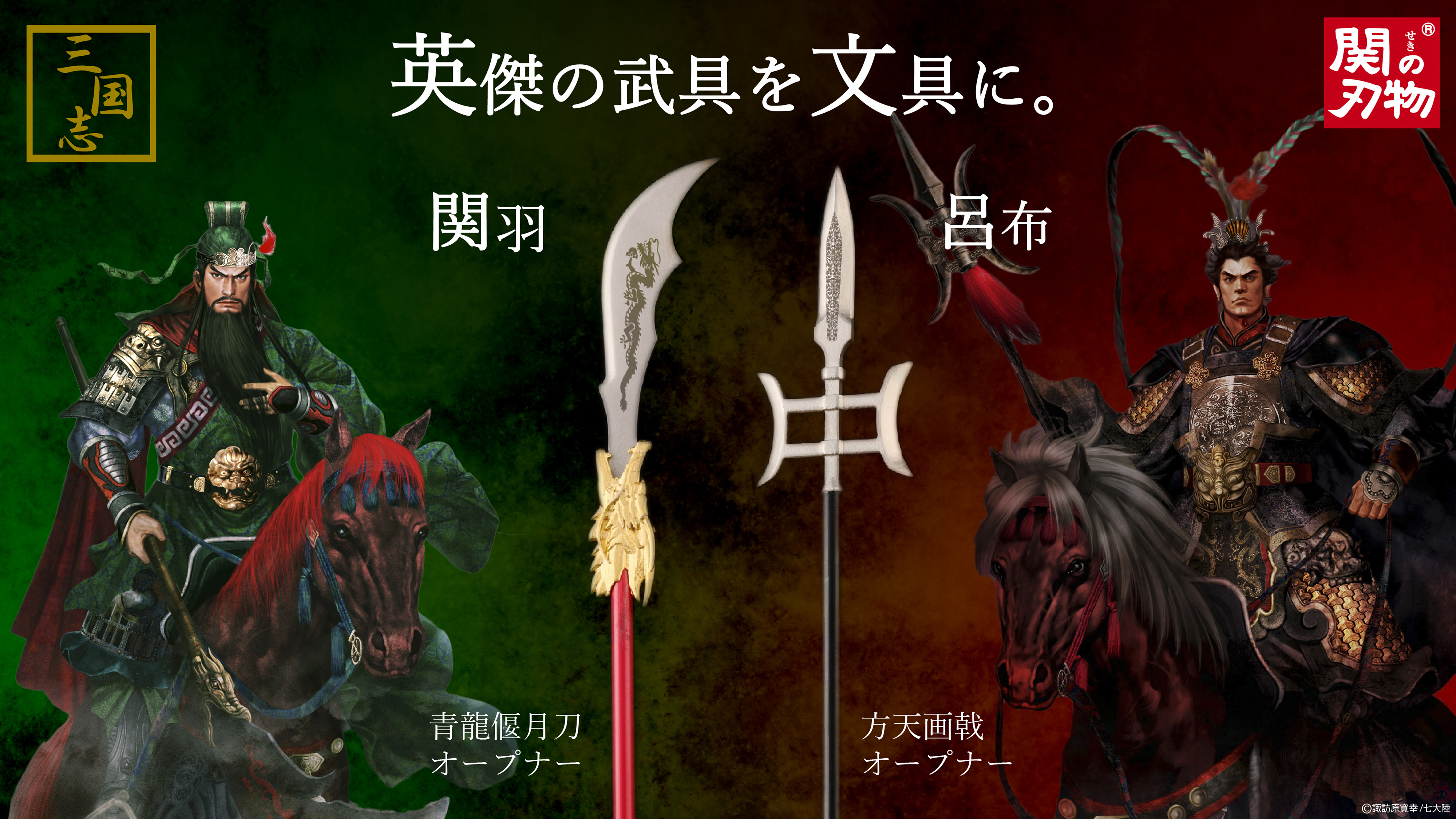 、呂布が愛用した” 方天画戟”をモチーフにしたペーパーナイフ。KOBE鉄人三国志ギャラリーの岡本館長にアドバイスをいただき細部にもこだわった商品です。
