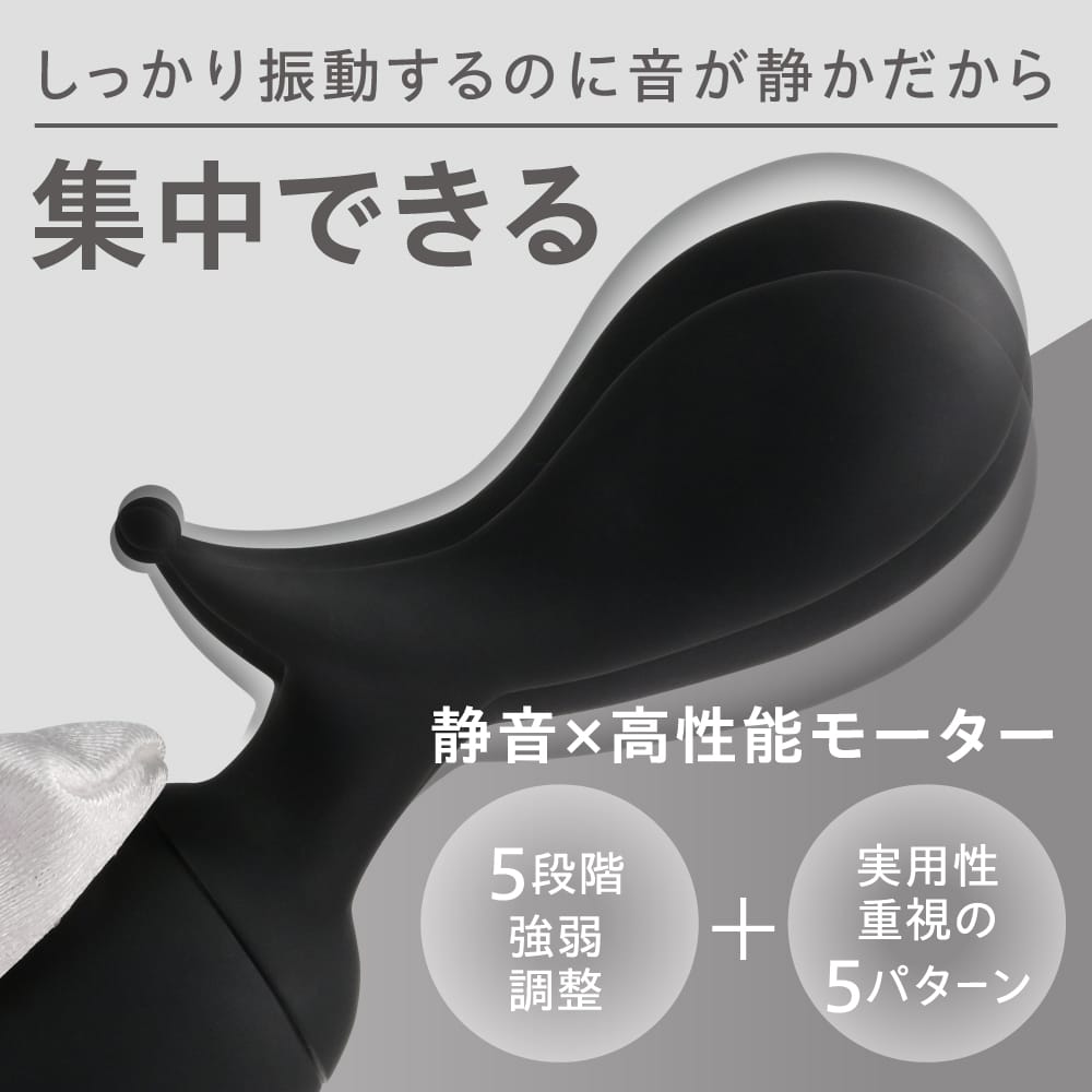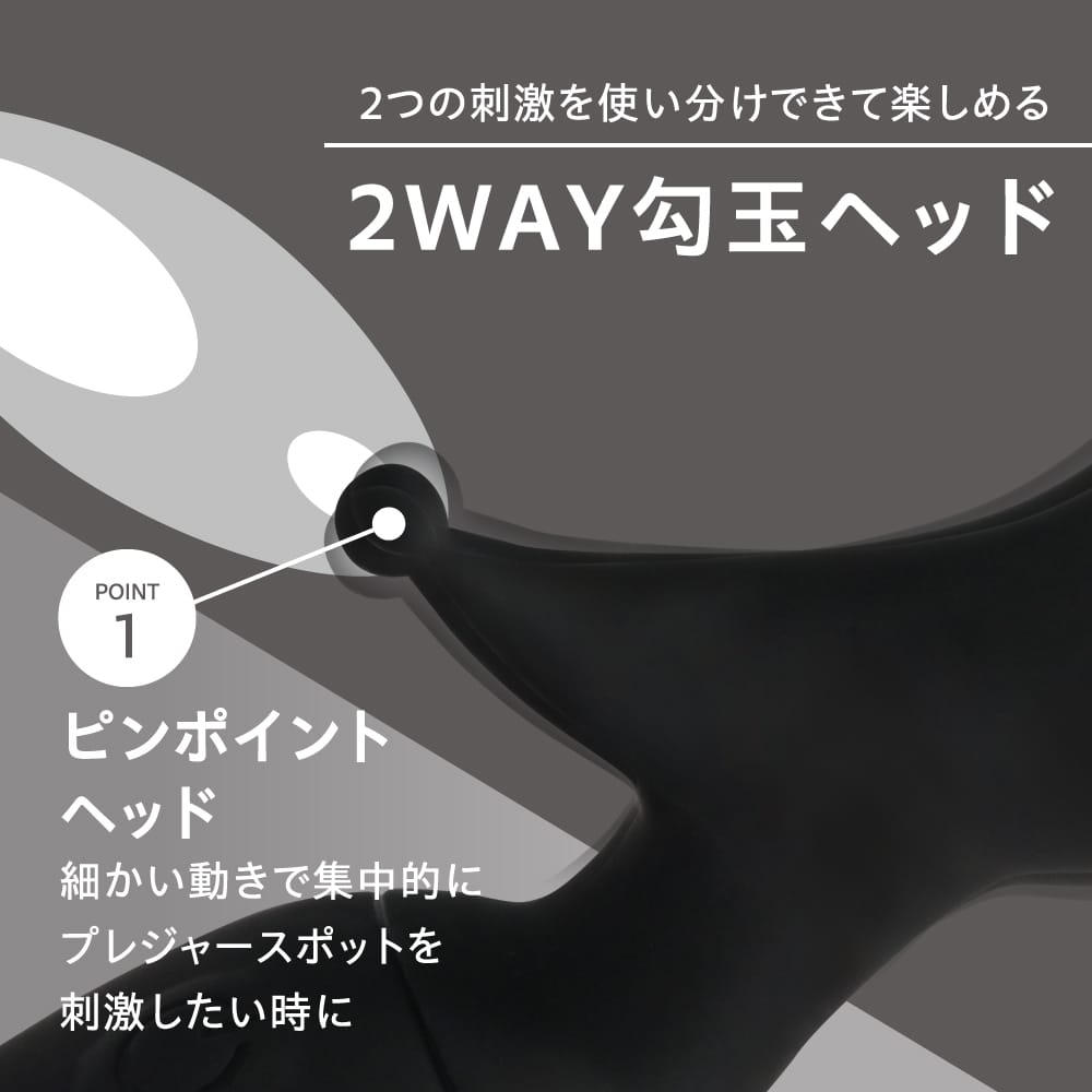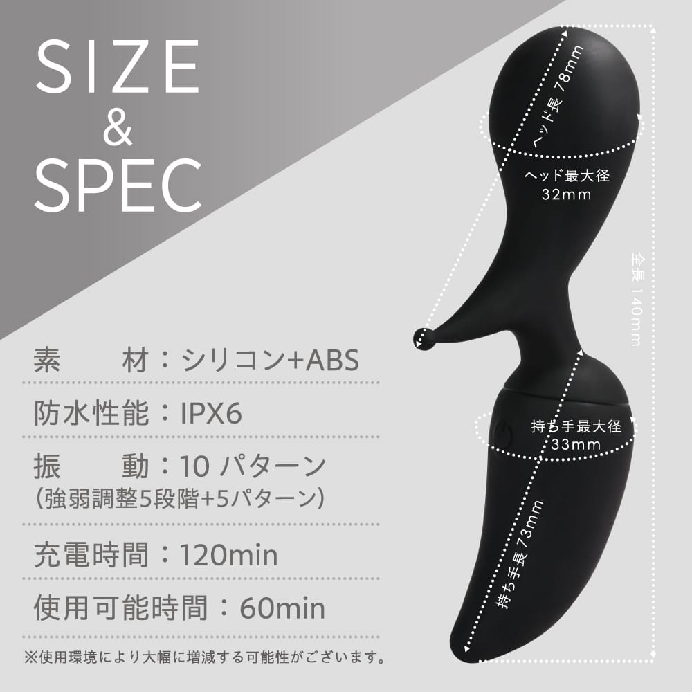ピンポイント刺激とズンズン電マ刺激の両方を楽しめる勾玉型の可愛いデンマです。2WAYヘッドが特徴でネックに少し角度をつけているのでセルフプレイにも最適です。上質で静音×高速振動モーターを採用した振動パターンは強弱調整を細かく5段階+実用性の高い5つの振動パターンの計10パターンをお楽しみ頂けます。オールシリコンボディの優しくしっとりとした感触がストレスフリーな使用感を演出します。120分充電で最大60分の連続使用が可能です。(使用環境により大幅に増減します。)IPX6の高レベル防水だからしっかり洗えて衛生的に長くお使い頂けます。