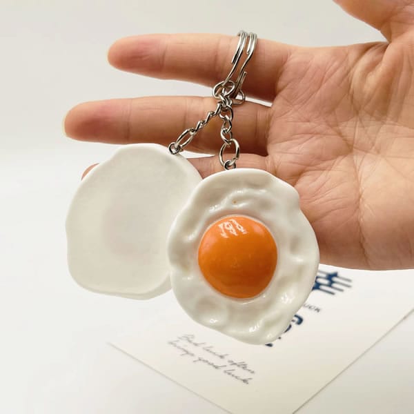 【#kawaiiiii!】大きな目玉焼きキーリング 目玉焼きキーホルダー (一点の価格です)