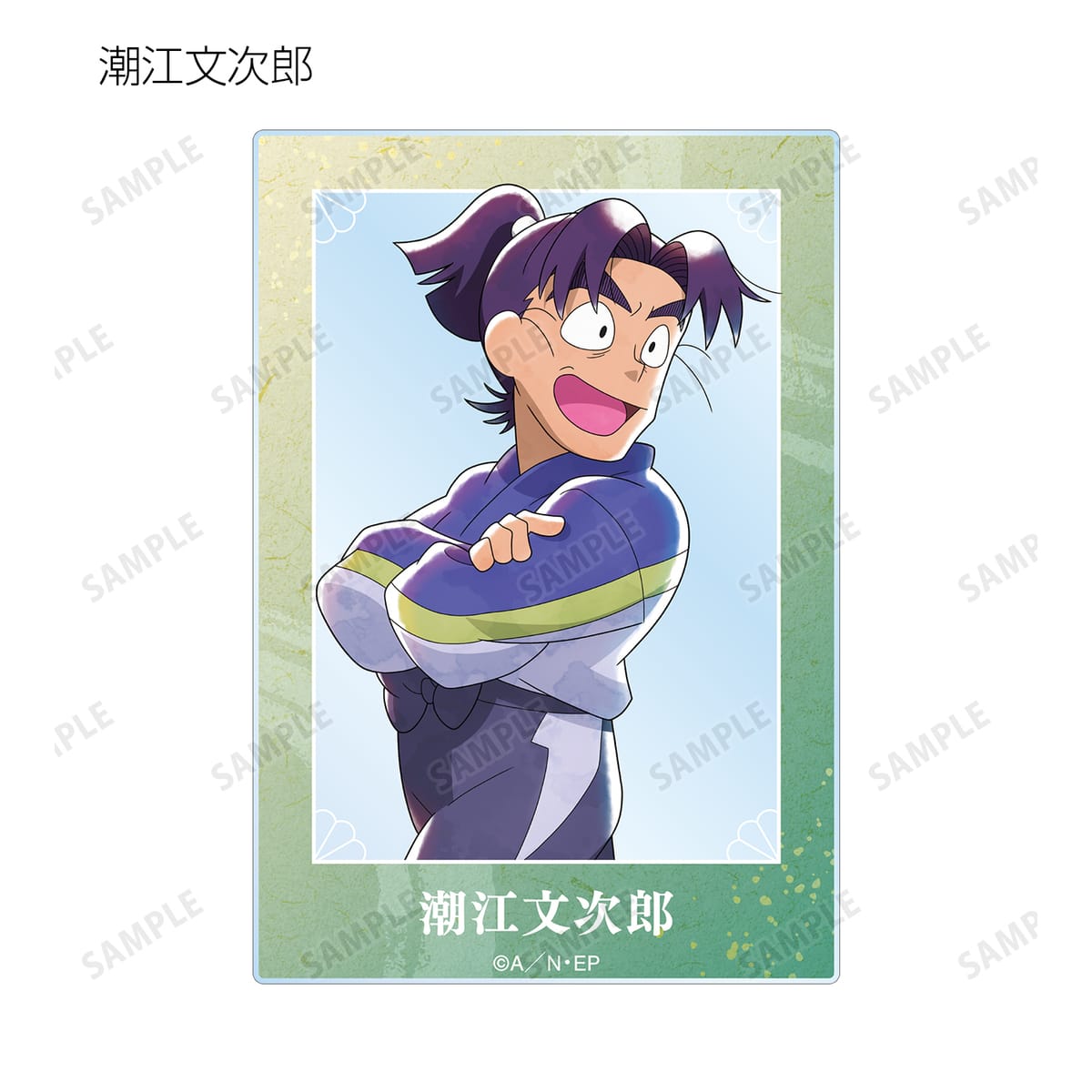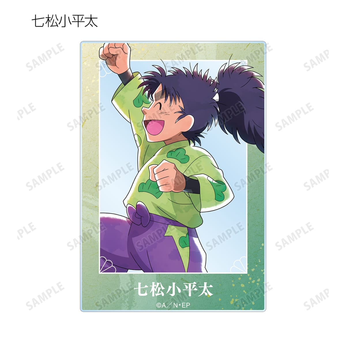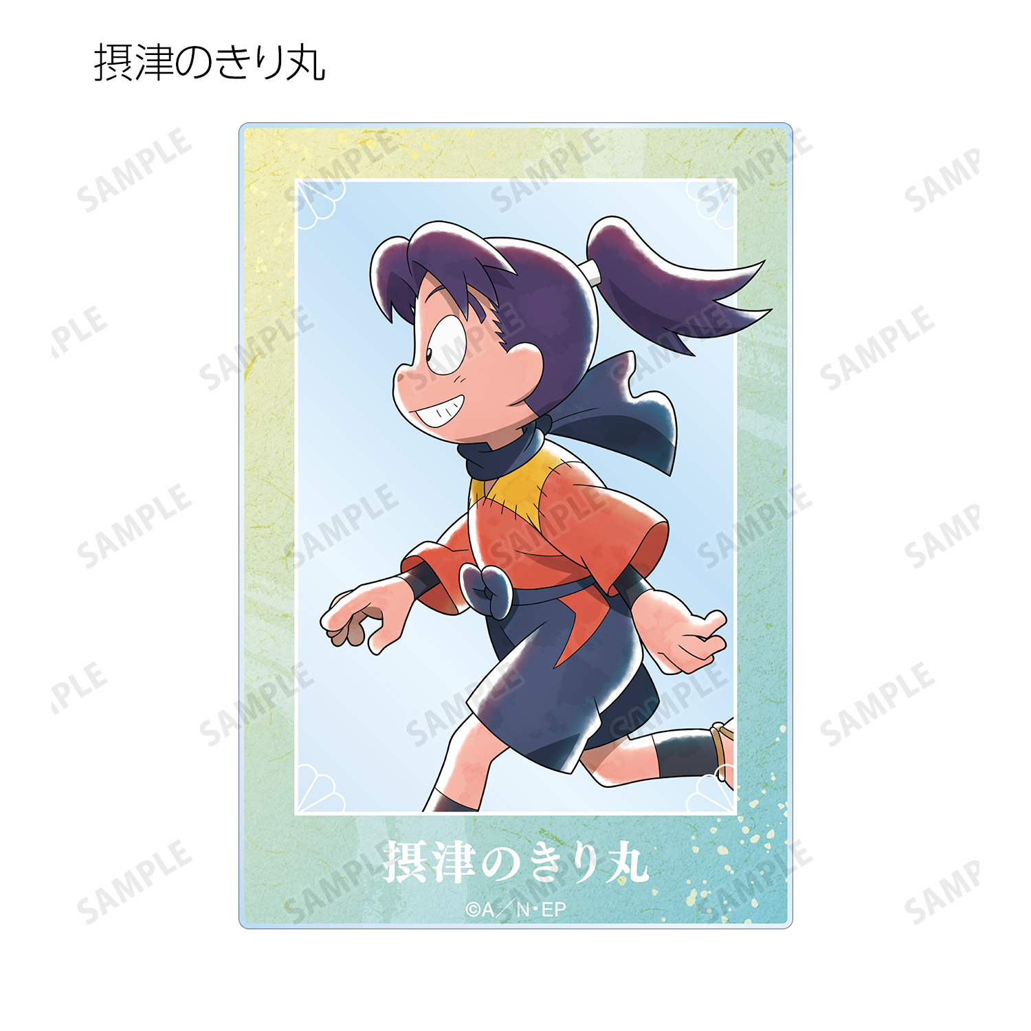 猪名寺乱太郎、摂津のきり丸、ヘムヘム、伊賀崎孫兵、次屋三之助、富松作兵衛、潮江文次郎、立花仙蔵、七松小平太の描き下ろしイラストをアクリルカードに仕上げました。