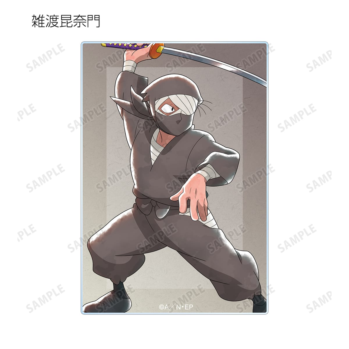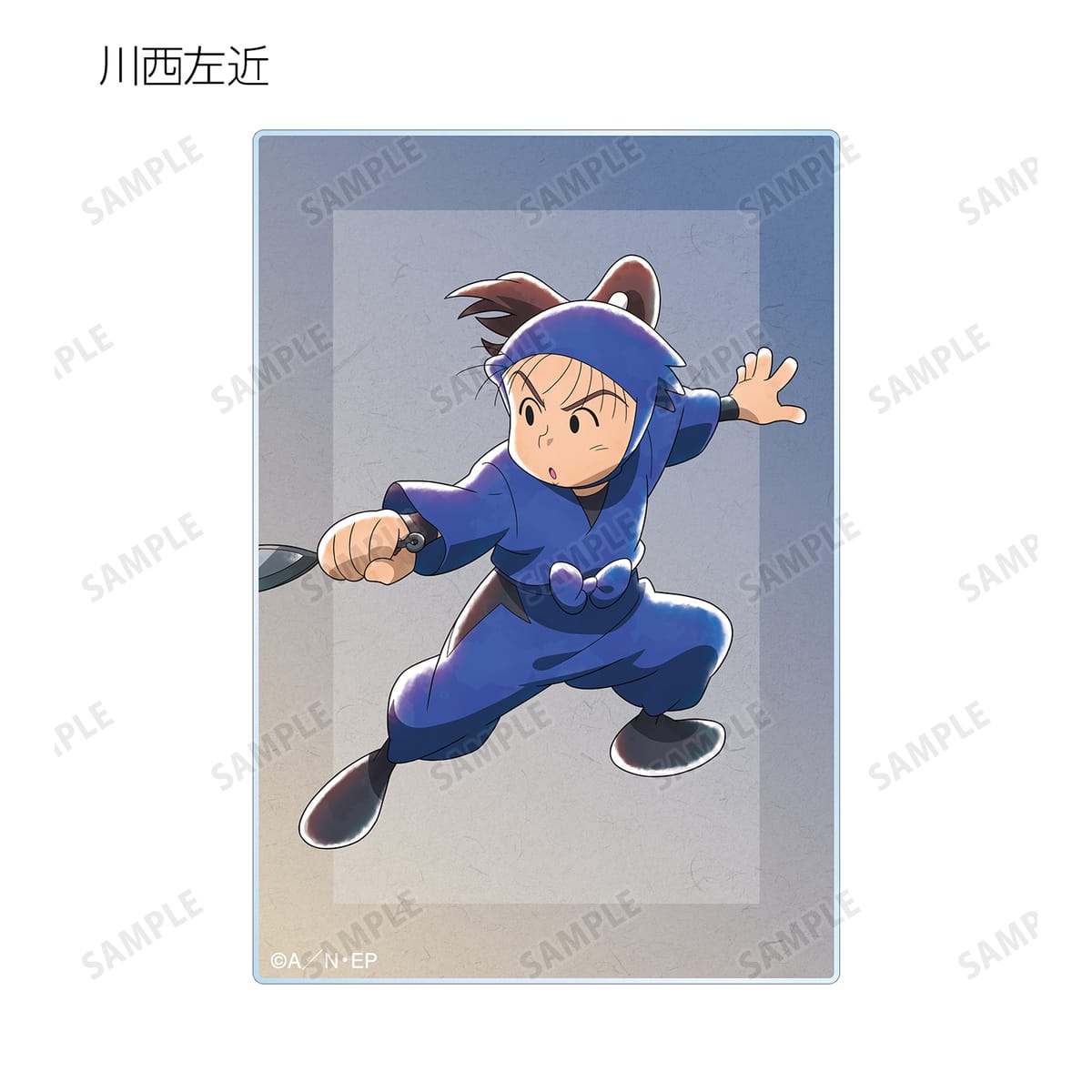 猪名寺乱太郎、摂津のきり丸、福富しんべヱ、山田伝蔵、池田三郎次、川西左近、能勢久作、時友四郎兵衛、羽丹羽石人、久々知兵助、尾浜勘右衛門、不破雷蔵、鉢屋三郎、竹谷八左ヱ門、雑渡昆奈門の描き下ろしイラストをアクリルカードに仕上げました。