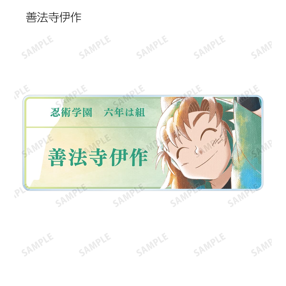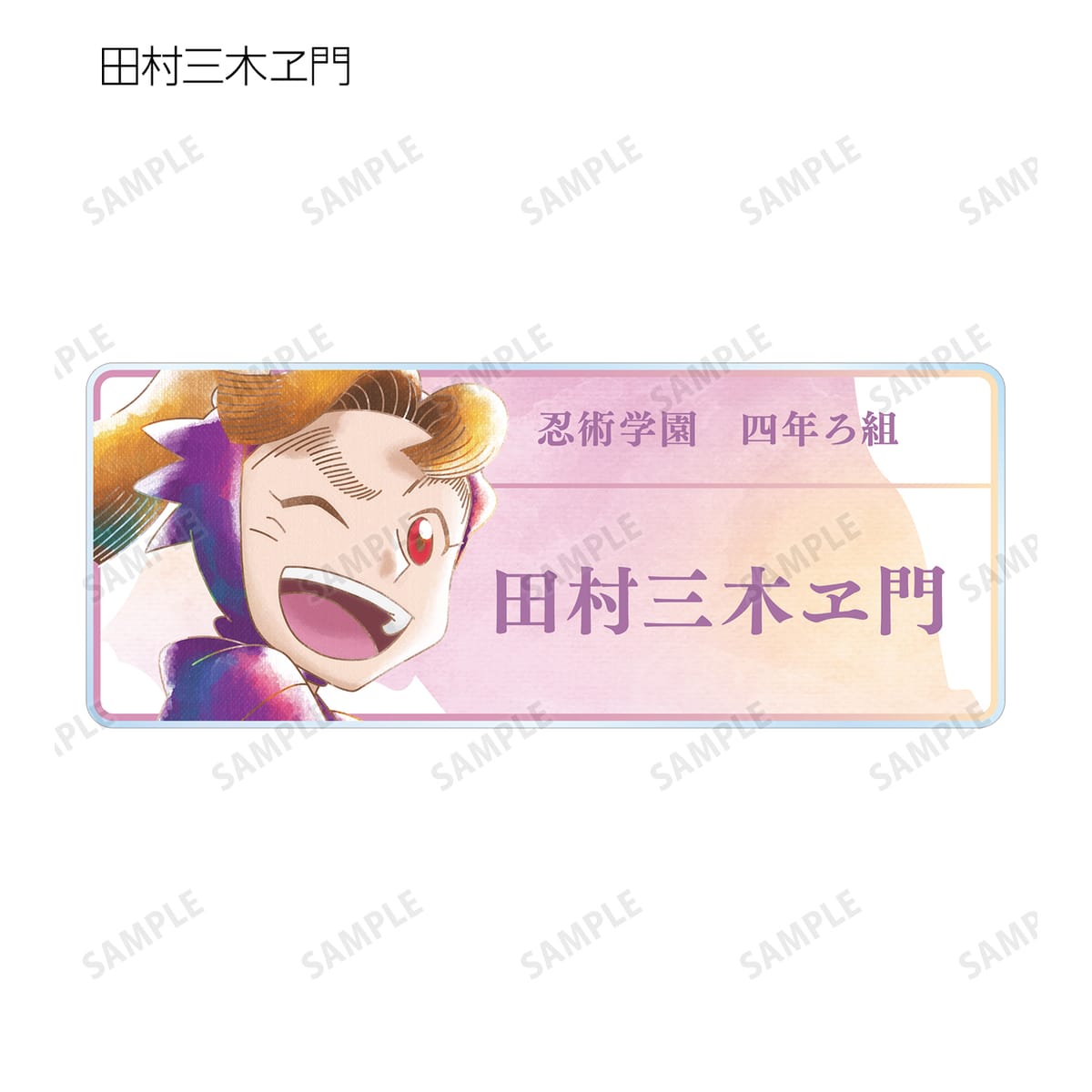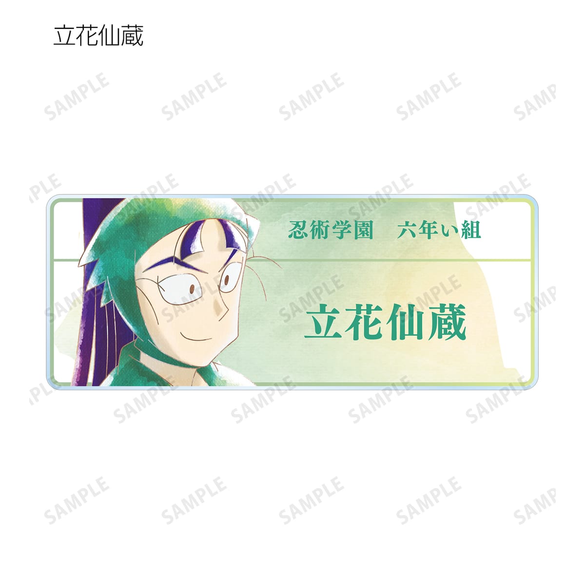 福富しんべヱ、土井半助、田村三木ヱ門、浜守一郎、斉藤タカ丸、不破雷蔵、竹谷八左ヱ門、立花仙蔵、善法寺伊作、食満留三郎、雑渡昆奈門を新たなタッチで魅力的に表現し、アクリルネームプレートに仕上げました。