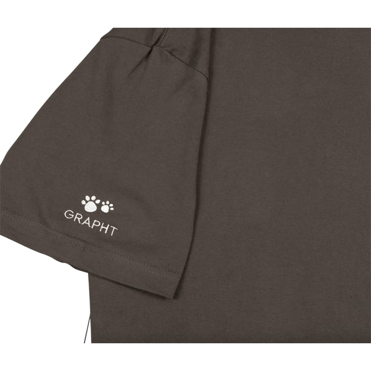 フロント左胸にはトロのフェイスを刺繍、右袖には足跡と『GRAPHT』ロゴを刺繍、バックにはトロの後ろ姿をプリントしています。