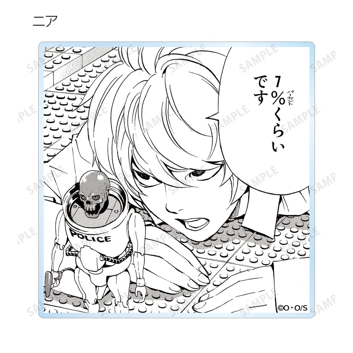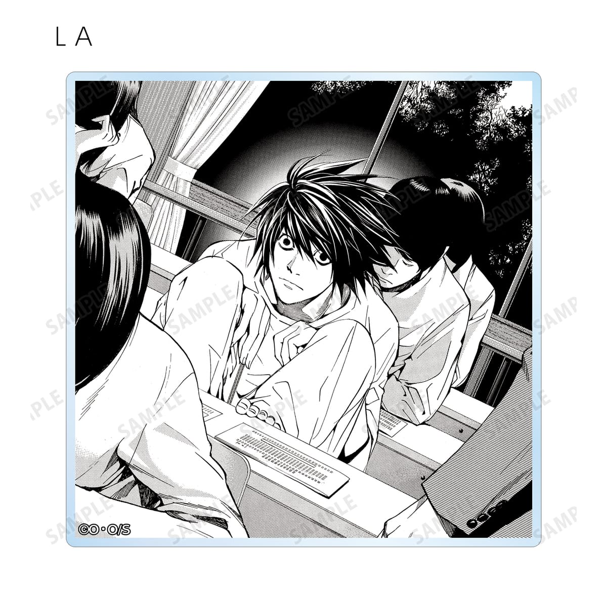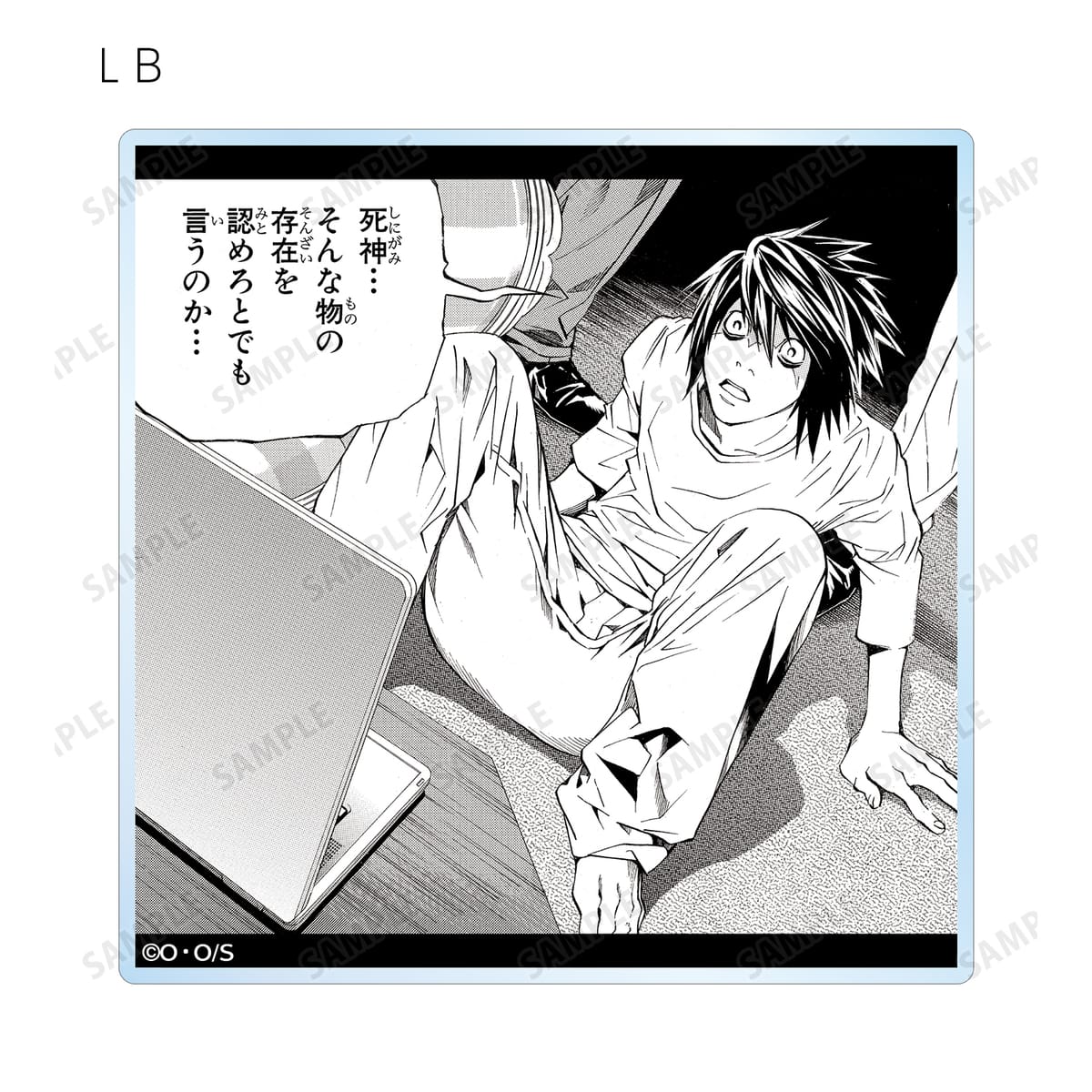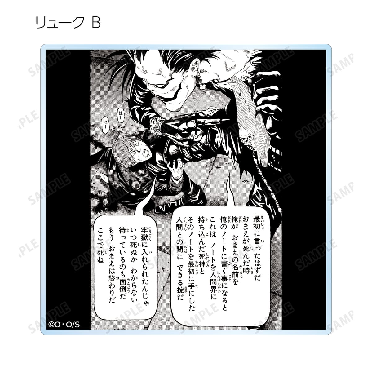 夜神 月、リューク、L、弥 海砂、レム、ニア、メロの印象的なシーンと作中の名シーンの原作コマをアクリルコースターに仕上げました。