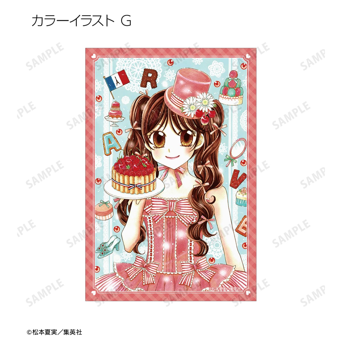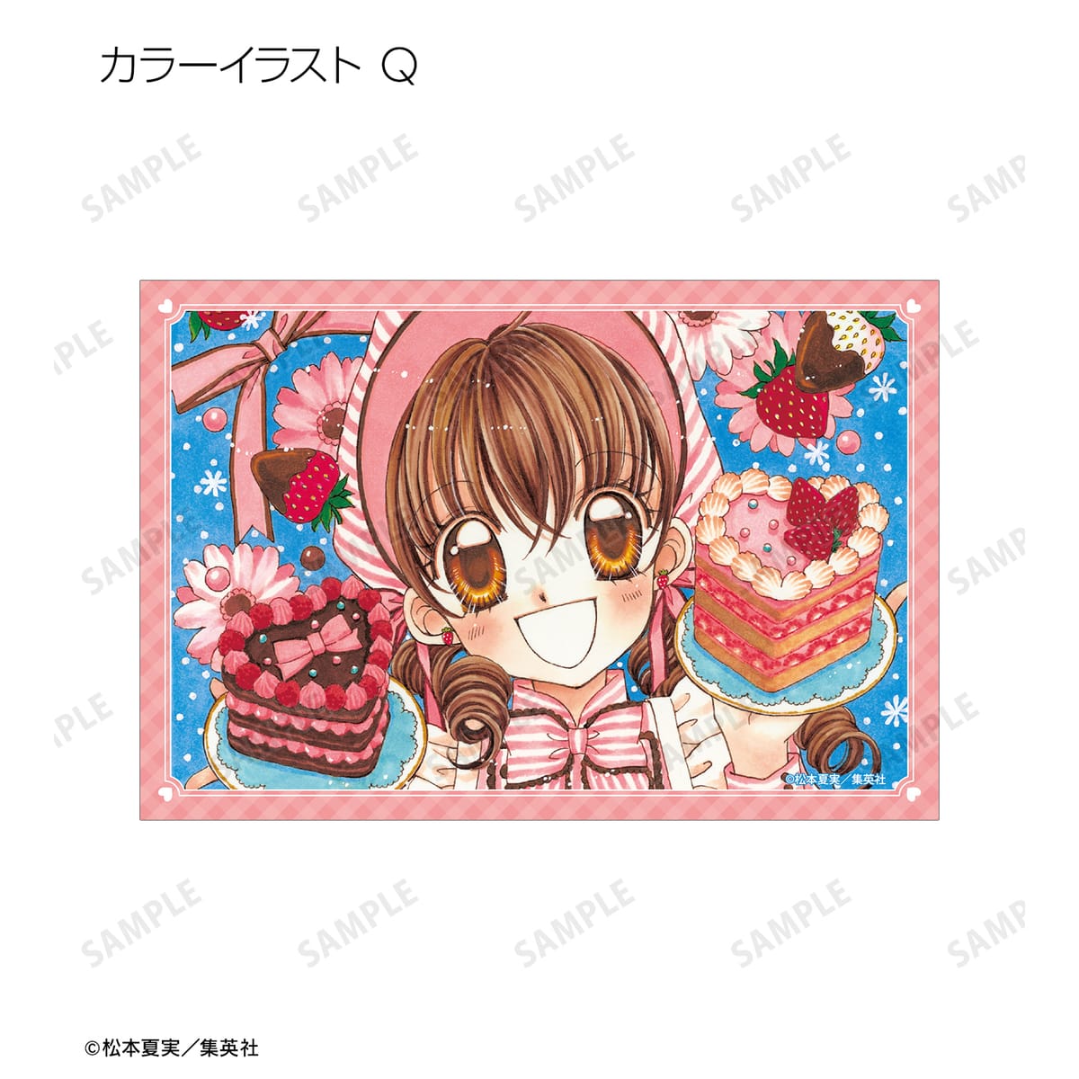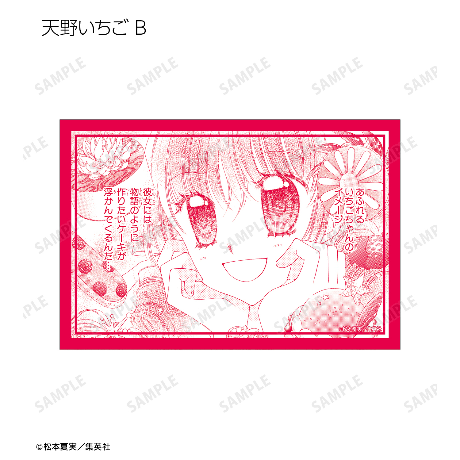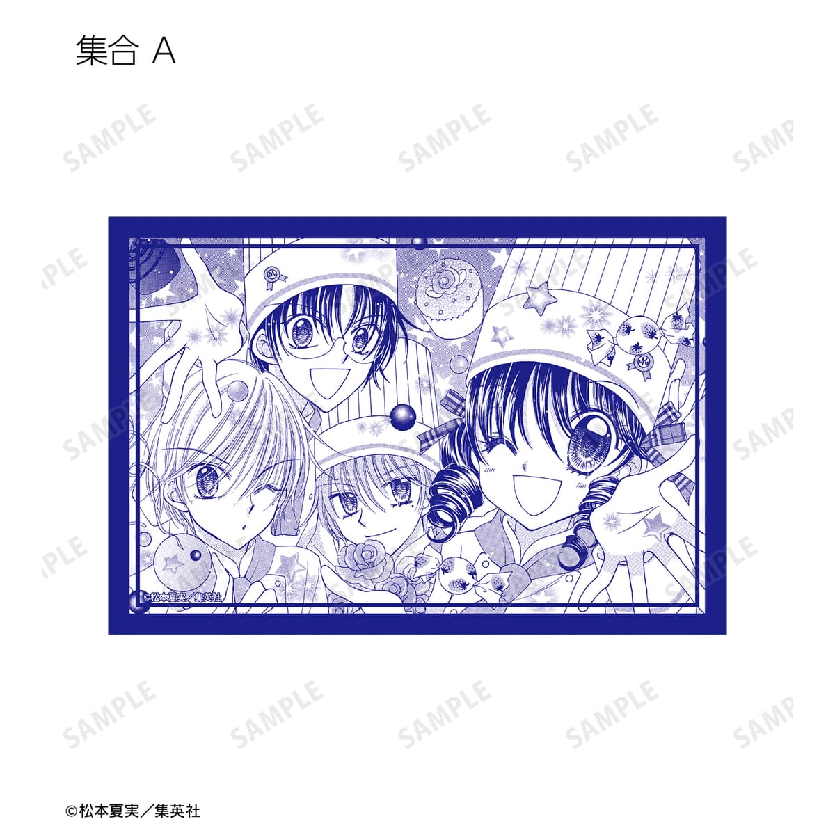 天野いちご、樫野真、安堂千乃介、花房五月、バニラ、ショコラ、キャラメル、カフェの原作イラスト、原作コマイラストをポストカードに仕上げました。