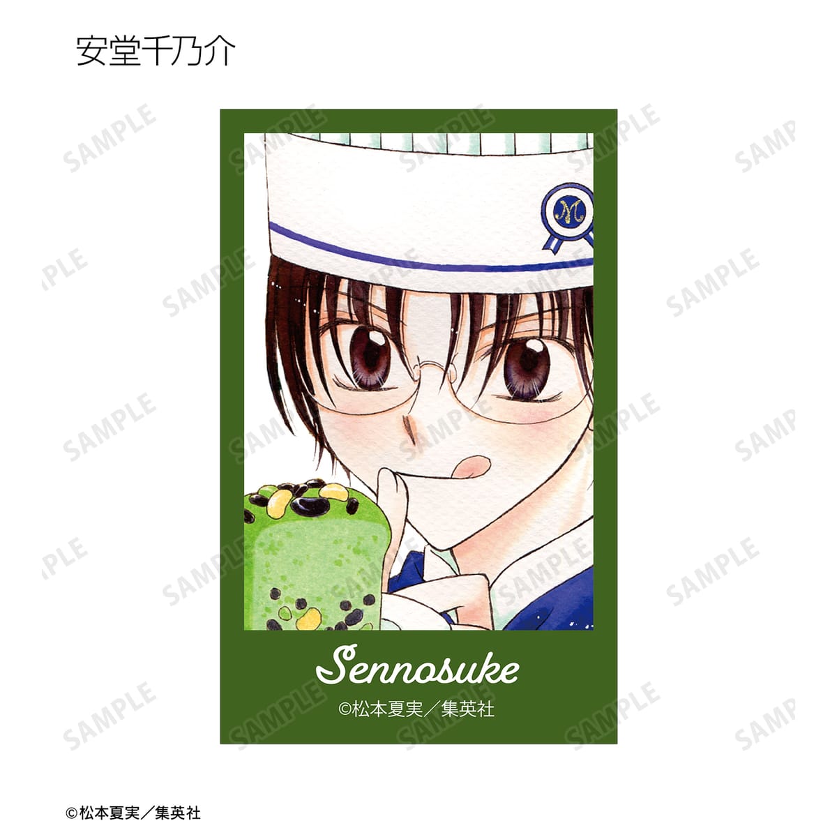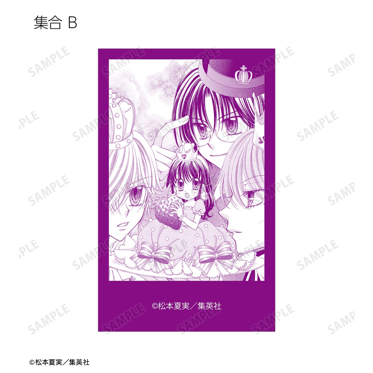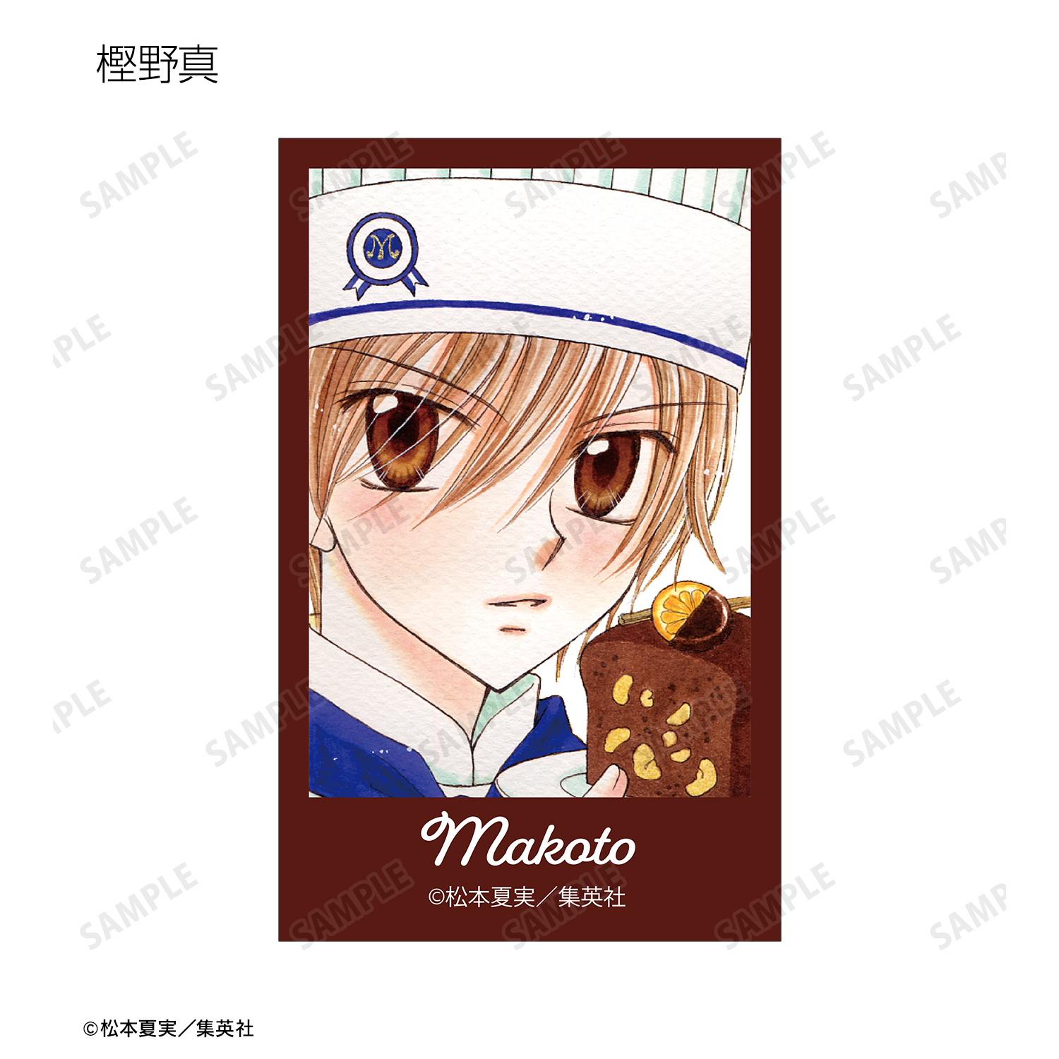 天野いちご、樫野真、安堂千乃介、花房五月、バニラ、ショコラ、キャラメル、カフェの原作イラスト、原作コマイラストをインスタントカメラ風のイラストカードに仕上げました。