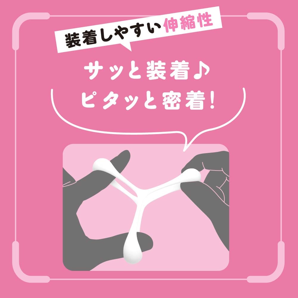 超!ぷにっとりんぐデルタにLサイズが登場!サイズに合わせて選択ができるようになりました。サッと装着♪ピタッと密着!根元を3点締めしてくれるデルタ形状のソフトverです。臭いのない高品質ソフトシリコンで着けてるストレスを軽減!デルタ形状でやさしく締め付け!勃ちの維持!萎え気味の竿の補強!イキ抑制!フィット面に施された滑り止めがズレを軽減し、皮戻り防止にも便利です。ビュルっと出る感UPでゆ~っくり夢心地発射!