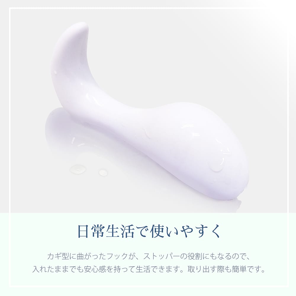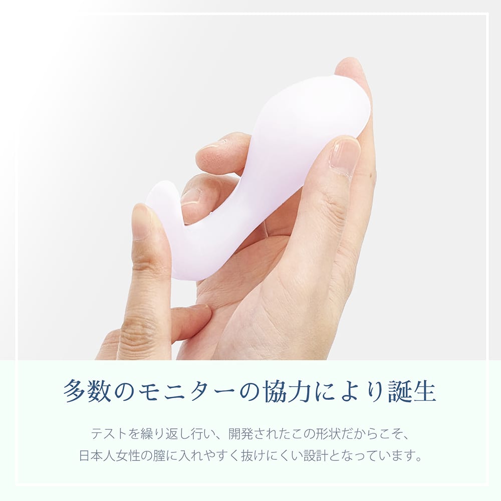 日常に馴染むフィット感!いれるだけの簡単、膣サポトレーニング初めの一歩!毎日継続して使い続けることで、膣壁を支える骨盤底筋のトレーニングをサポートします。たくさんのご要望にお応えして、さらに柔らかソフトタイプが登場!この独特なデザインは、人間工学に基づいた設計になっております。理学博士関邦博先生の指導の元、長年膣内を研究し開発された形は、日本人女性の膣にぴったりとフィットします。多数のモニターの協力を得て、テストを繰り返し誕生したこの形状だからこそ、日本人女性の膣に入れやすく抜けにくい設計です。短時間から始められるので、膣トレ初心者さんにも。慣れてきたら、徐々に使用時間を増やしてみてください。カギ型に曲がったフックが、ストッパーの役割にもなるので安心。毎日使うものだから、医療用シリコン製。何度でも洗って繰り返しお使いいただけます。〔実用新案登録第3157804号〕