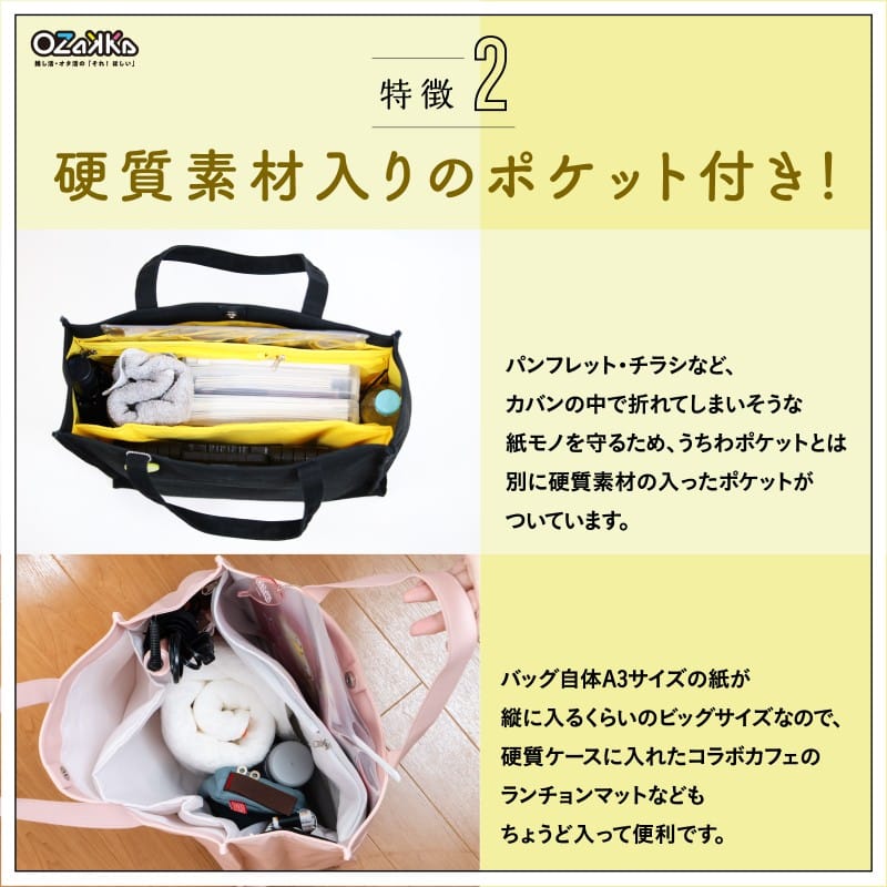 会場でゲットしたパンフレットやチラシを折れにくく収納できる硬質素材入りのポケット、