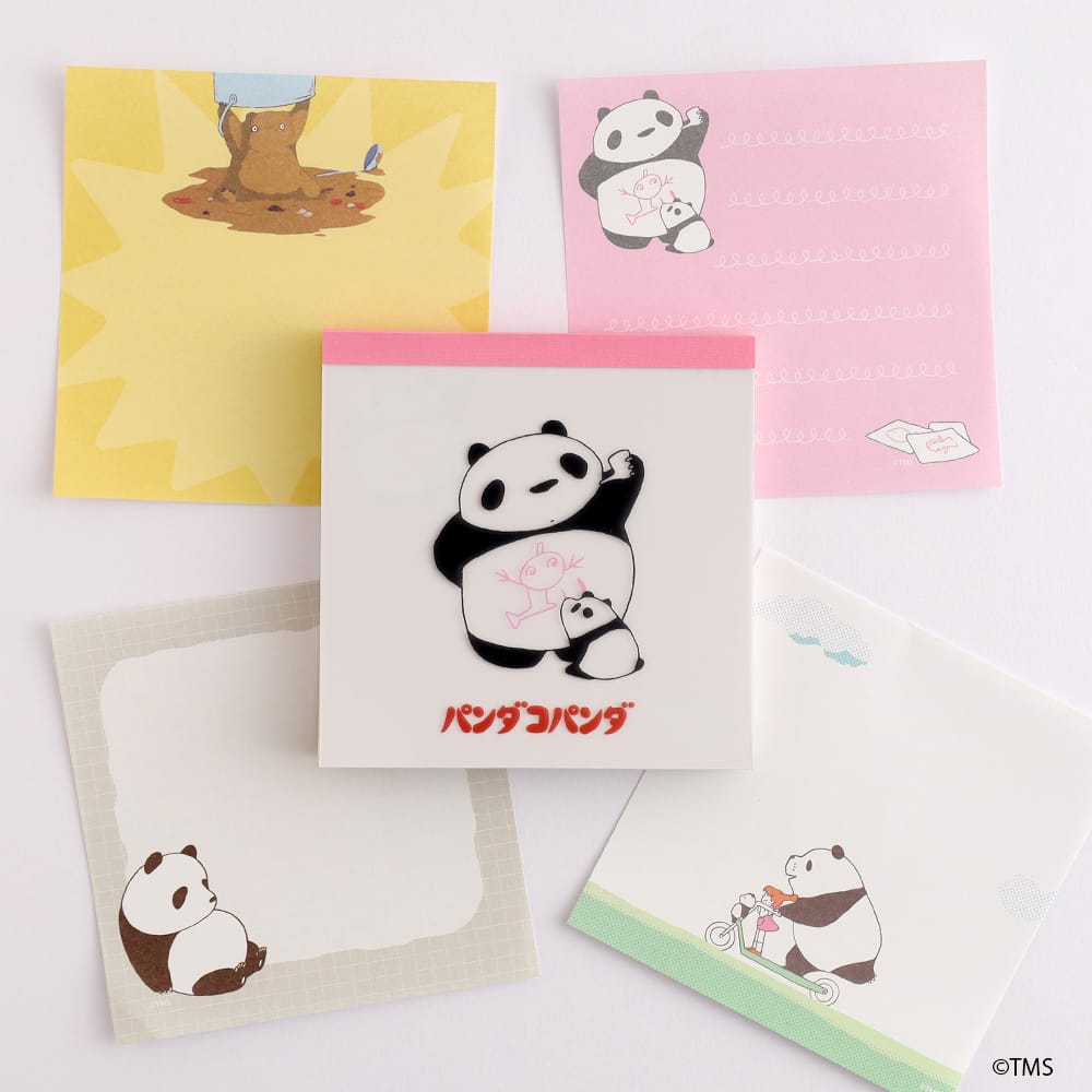 パンダコパンダの微笑ましいシーンやかわいらしい親子の様子をデザインしたシリーズ。4種類の絵柄が楽しめる、スクエアタイプのメモパッドです。