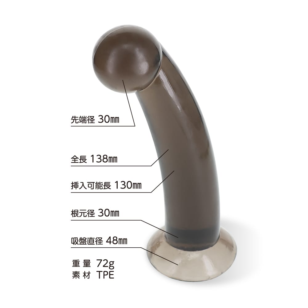 つるんとシンプルに可愛いフォルムに透明度の高い高品質クリアTPE素材を採用しました。とにかく抵抗が少ないスマートで滑らかな形状と透け感が特徴です。もちっと弾力のある感触が程よいリアル感を演出しています。壁や床にしっかり吸着する吸盤付き。