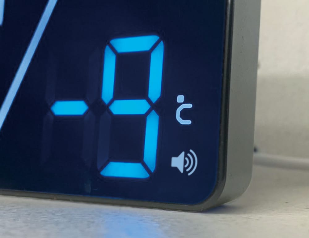 コンパクトながら優れた視認性を誇り、室温が高温になると温度表示の色が変化し、アラート音(ピピピ)で室温調整を促します。