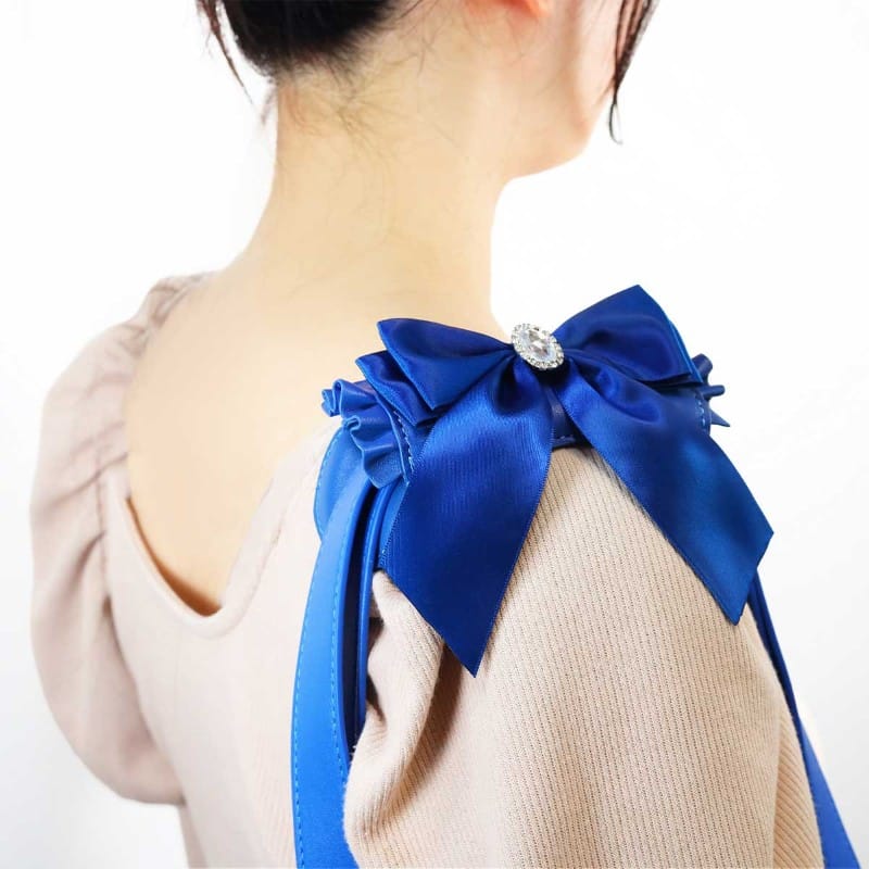 大きなリボンとキラキラビジューが痛バッグをもっと華やかに!リボンの位置を手前側に調整したことで、肩の上での存在感がUPしました★