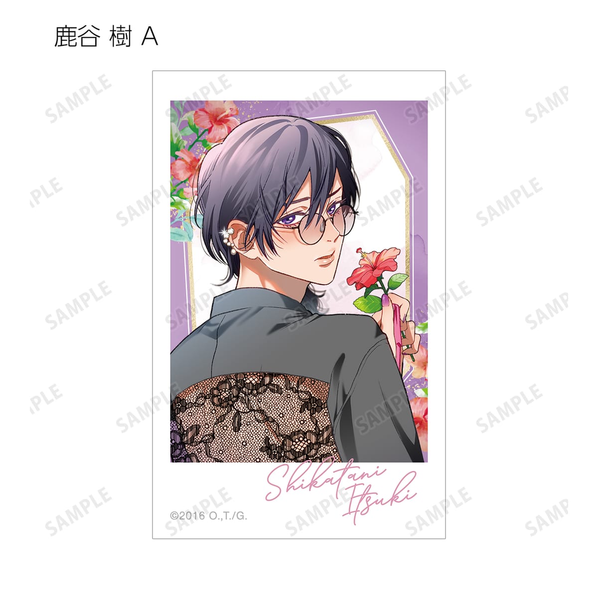 おげれつたなか先生描き下ろしイラストの遠野 高志、加島 優、矢口 恭介、百合 絢斗、田村 唯、鹿谷 樹、明美 圭一、糸目 幸士郎、藤咲 透をインスタントカメラ風のイラストカードに仕上げました。