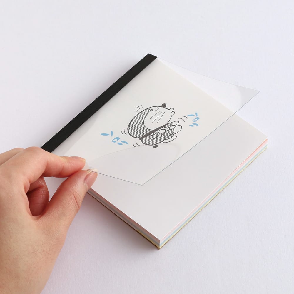 表紙はクリアタイプの硬質塩ビに樹脂盛り加工。中面の絵柄は4種類あり、ドラえもんたちの豊かな表情を楽しめます。(C)Fujiko-Pro
