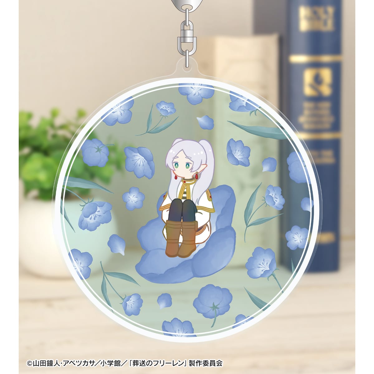 フリーレンのイラストをボタニカルデザインに落とし込んで繊細なタッチで新たに描き起こし、BIGなアクリルキーホルダーに仕上げました。