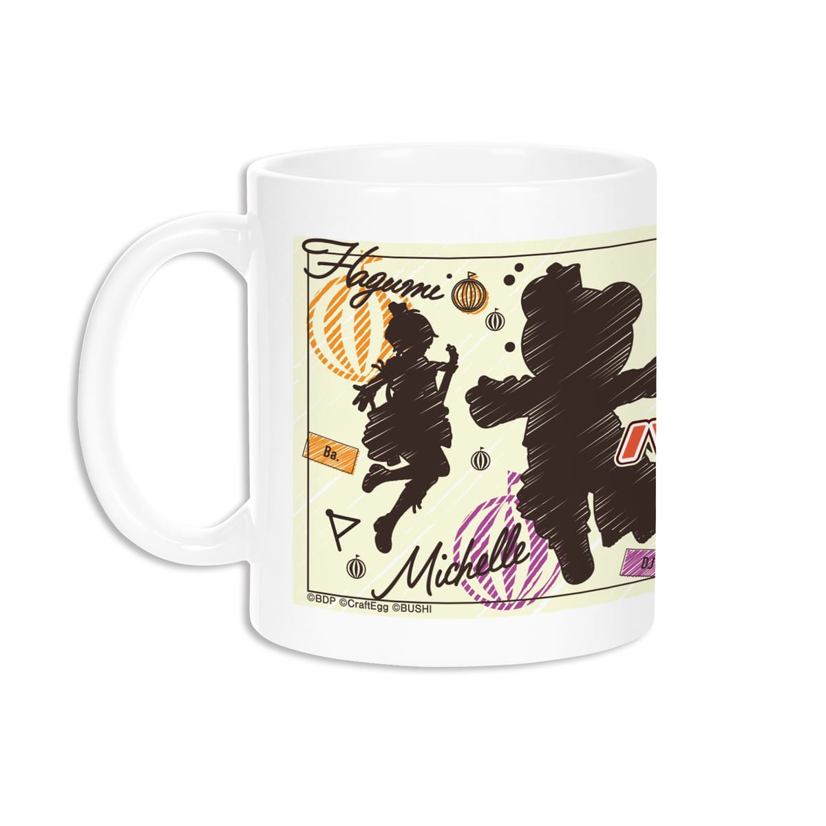弦巻 こころ、瀬田 薫、北沢 はぐみ、松原 花音、ミッシェルのイラストをスケッチ風のタッチで新たに描き起こし、マグカップに仕上げました。