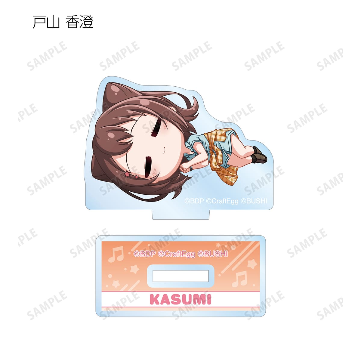 戸山 香澄、花園 たえ、牛込 りみ、山吹 沙綾、市ヶ谷 有咲、美竹 蘭、青葉 モカ、上原 ひまり、宇田川 巴、羽沢 つぐみがころんと寝ているちびキャラを新たに描き起こし、アクリルスタンドに仕上げました。