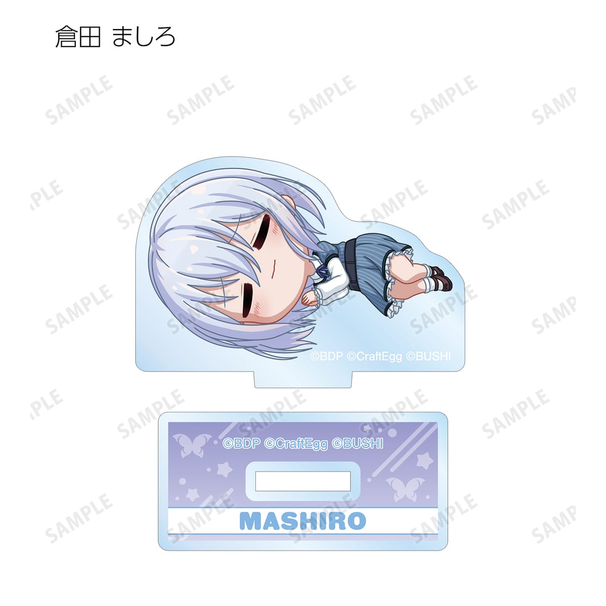 弦巻 こころ、瀬田 薫、北沢 はぐみ、松原 花音、奥沢 美咲、倉田 ましろ、桐ヶ谷 透子、広町 七深、二葉 つくし、八潮 瑠唯、レイヤ、ロック、マスキング、パレオ、チュチュがころんと寝ているちびキャラを新たに描き起こし、アクリルスタンドに仕上げました。