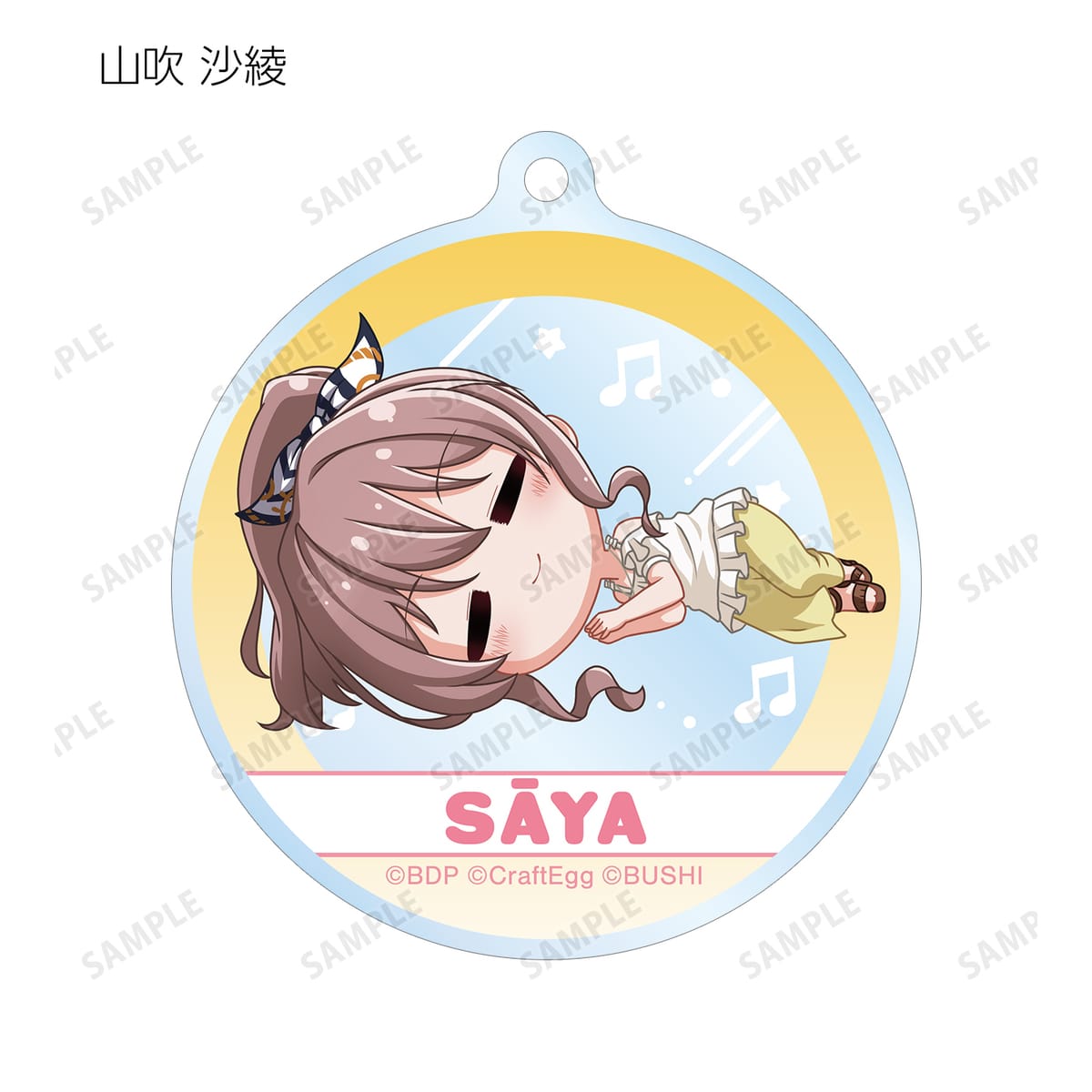 戸山 香澄、花園 たえ、牛込 りみ、山吹 沙綾、市ヶ谷 有咲、美竹 蘭、青葉 モカ、上原 ひまり、宇田川 巴、羽沢 つぐみがころんと寝ているちびキャラを新たに描き起こし、アクリルキーホルダーに仕上げました。