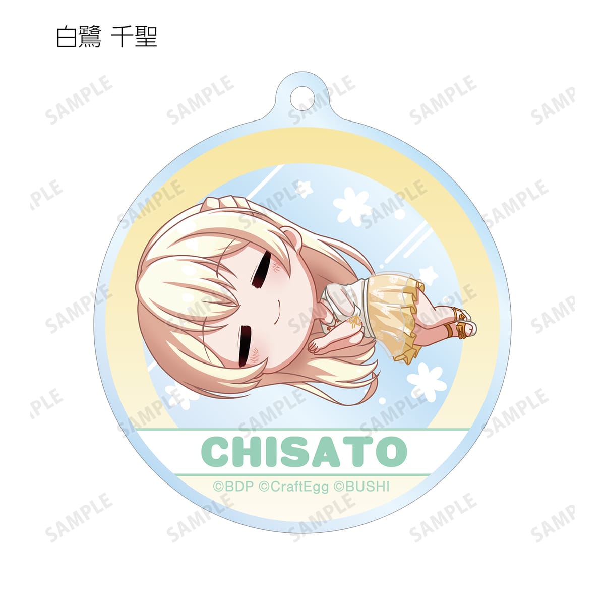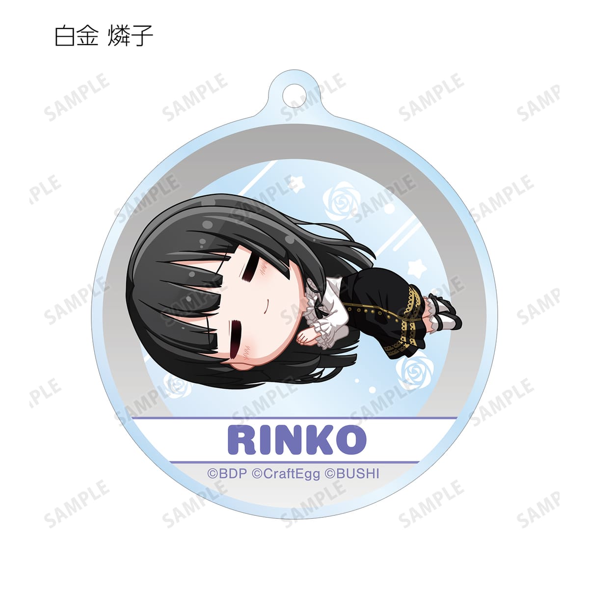 丸山 彩、氷川 日菜、白鷺 千聖、大和 麻弥、若宮 イヴ、湊 友希那、氷川 紗夜、今井 リサ、宇田川 あこ、白金 燐子がころんと寝ているちびキャラを新たに描き起こし、アクリルキーホルダーに仕上げました。