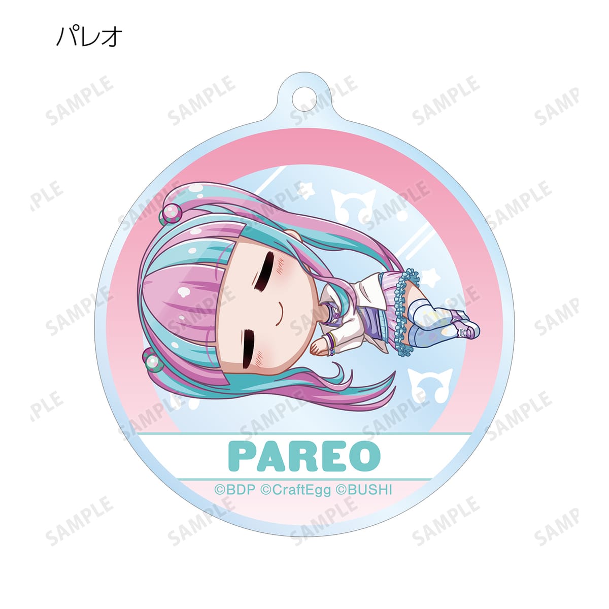 弦巻 こころ、瀬田 薫、北沢 はぐみ、松原 花音、奥沢 美咲、倉田 ましろ、桐ヶ谷 透子、広町 七深、二葉 つくし、八潮 瑠唯、レイヤ、ロック、マスキング、パレオ、チュチュがころんと寝ているちびキャラを新たに描き起こし、アクリルキーホルダーに仕上げました。