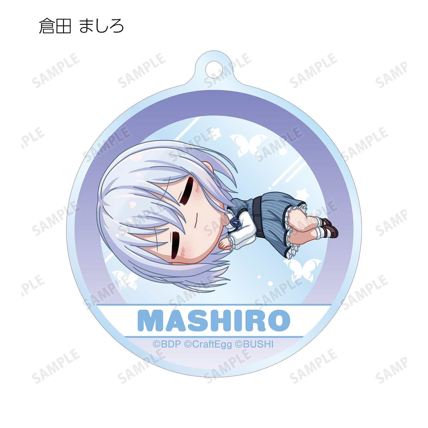 弦巻 こころ、瀬田 薫、北沢 はぐみ、松原 花音、奥沢 美咲、倉田 ましろ、桐ヶ谷 透子、広町 七深、二葉 つくし、八潮 瑠唯、レイヤ、ロック、マスキング、パレオ、チュチュがころんと寝ているちびキャラを新たに描き起こし、アクリルキーホルダーに仕上げました。