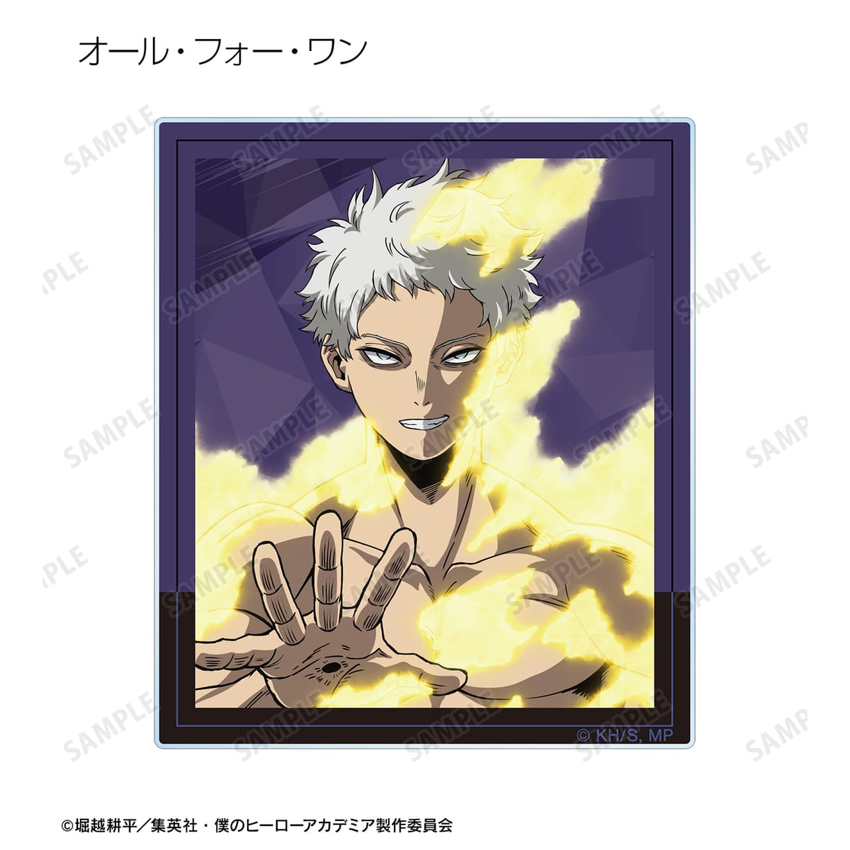 緑谷出久、爆豪勝己、麗日お茶子、轟焦凍、アーマード・オールマイト、相澤消太、エンデヴァー、ホークス、死柄木弔、オール・フォー・ワン、荼毘、トガヒミコのビジュアルをアクリルカードに仕上げました。