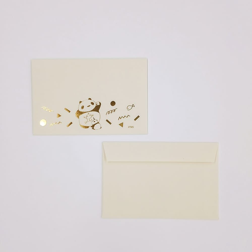 パンダコパンダの微笑ましいシーンやかわいらしい親子の様子をデザインしたシリーズ。封筒の絵柄部分に金箔押しをあしらったレターセットです。