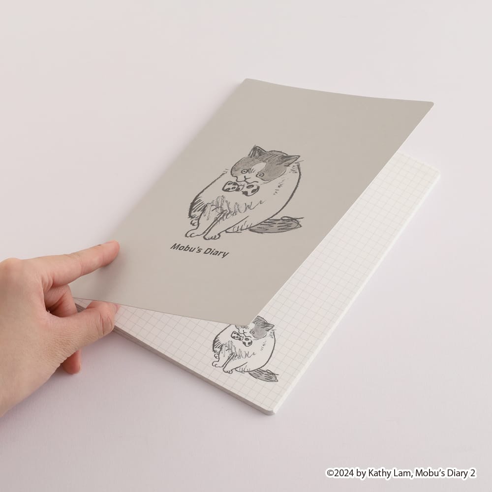 台湾で大人気のコミック作品集「三毛猫モブは猫缶を稼ぎたい」オリジナルデザインシリーズの第2弾が登場。表裏どちらのイラストも楽しめるA5サイズの綴じノートです。ノートの中柄も愛らしいモブのイラストがあしらわれています。