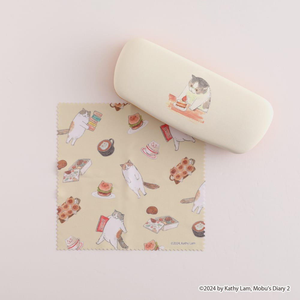 台湾で大人気のコミック作品集「三毛猫モブは猫缶を稼ぎたい」オリジナルデザインシリーズの第2弾が登場。モブのかわいいイラストがデザインされたメガネケースとメガネクロスがセットになっています。