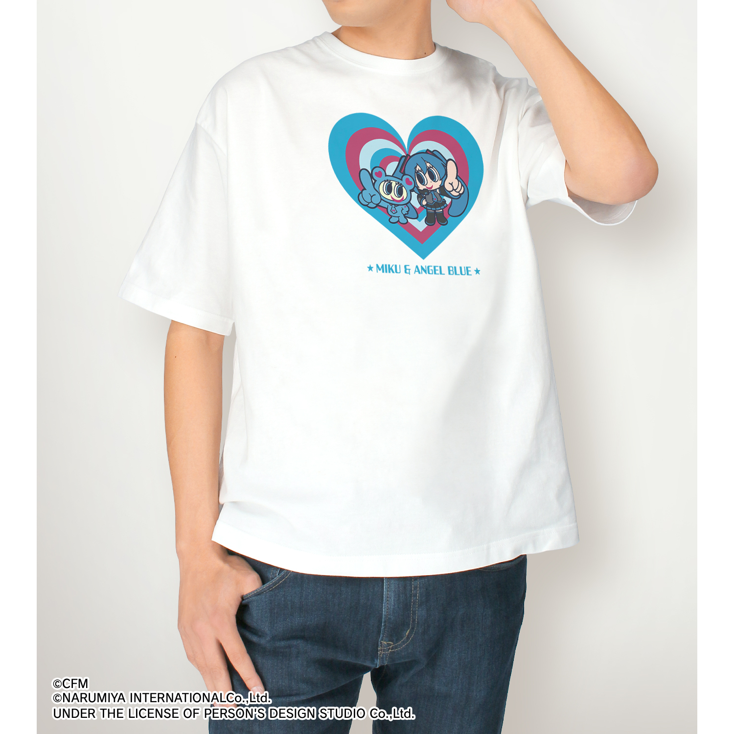 初音ミク、ナカムラくんを描き起こしたANGEL BLUEのコラボイラストを、BIGなシルエットTシャツに仕上げました。
