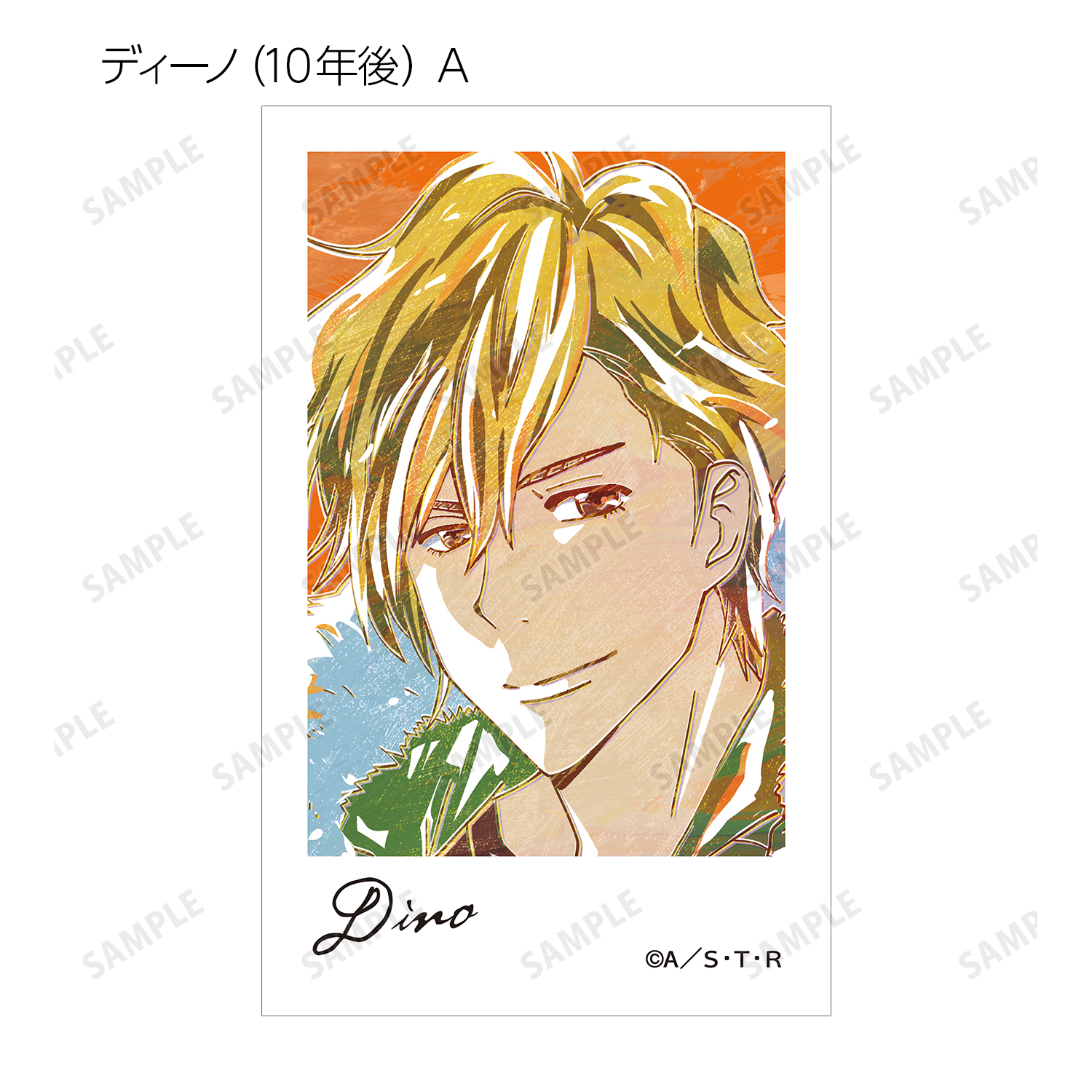 沢田 綱吉 、リボーン、獄寺 隼人(10年後)、山本 武(10年後)、雲雀 恭弥(10年後)、大人ランボ、笹川 了平(10年後)、六道 骸(10年後)、ディーノ(10年後)、XANXUS (10年後)、スペルビ・スクアーロ(10年後)、ベルフェゴール(10年後)、フランのイラストを新たなタッチで魅力的に表現し、イラストカードに仕上げました。