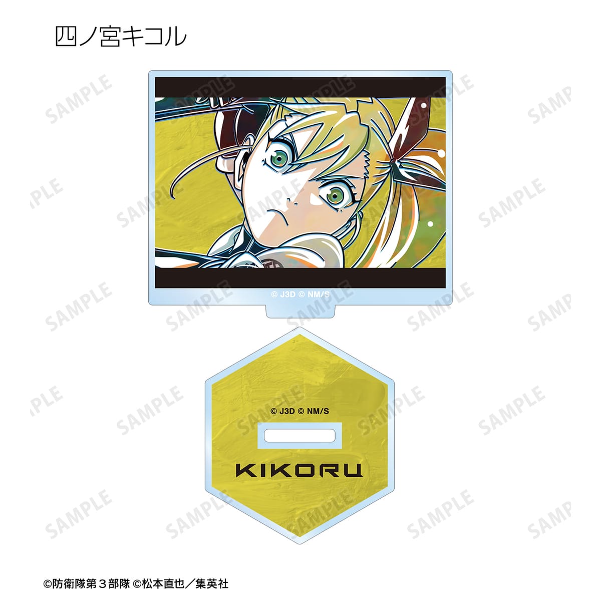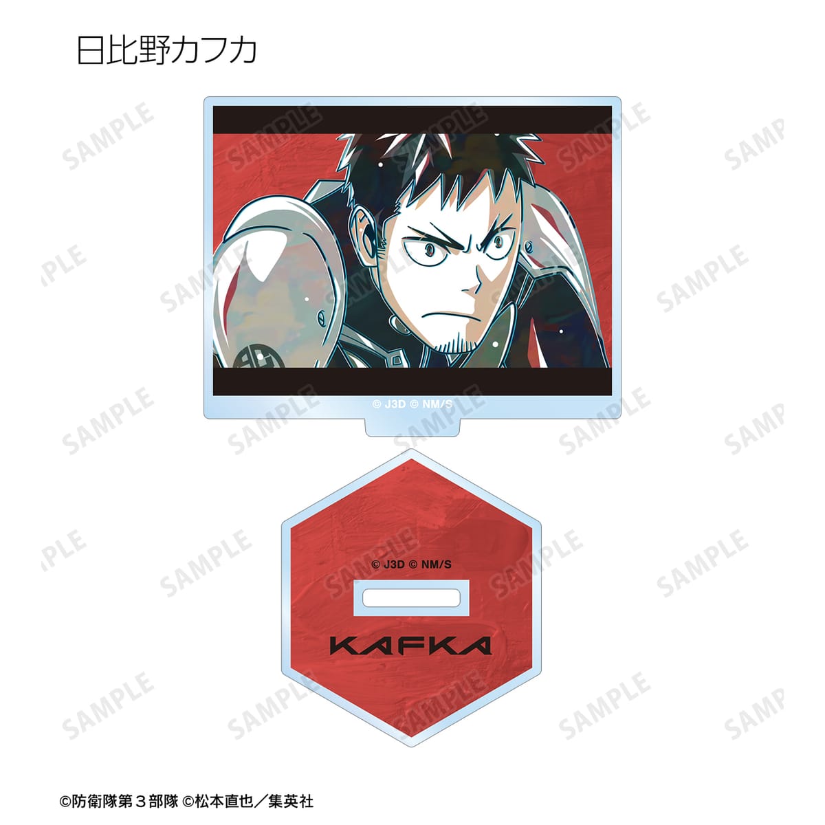 怪獣8号、日比野カフカ、市川レノ、四ノ宮キコル、亜白ミナ、保科宗四郎、鳴海弦、古橋伊春、四ノ宮功、怪獣9号のイラストを新たなタッチで魅力的に表現し、アクリルスタンドに仕上げました。