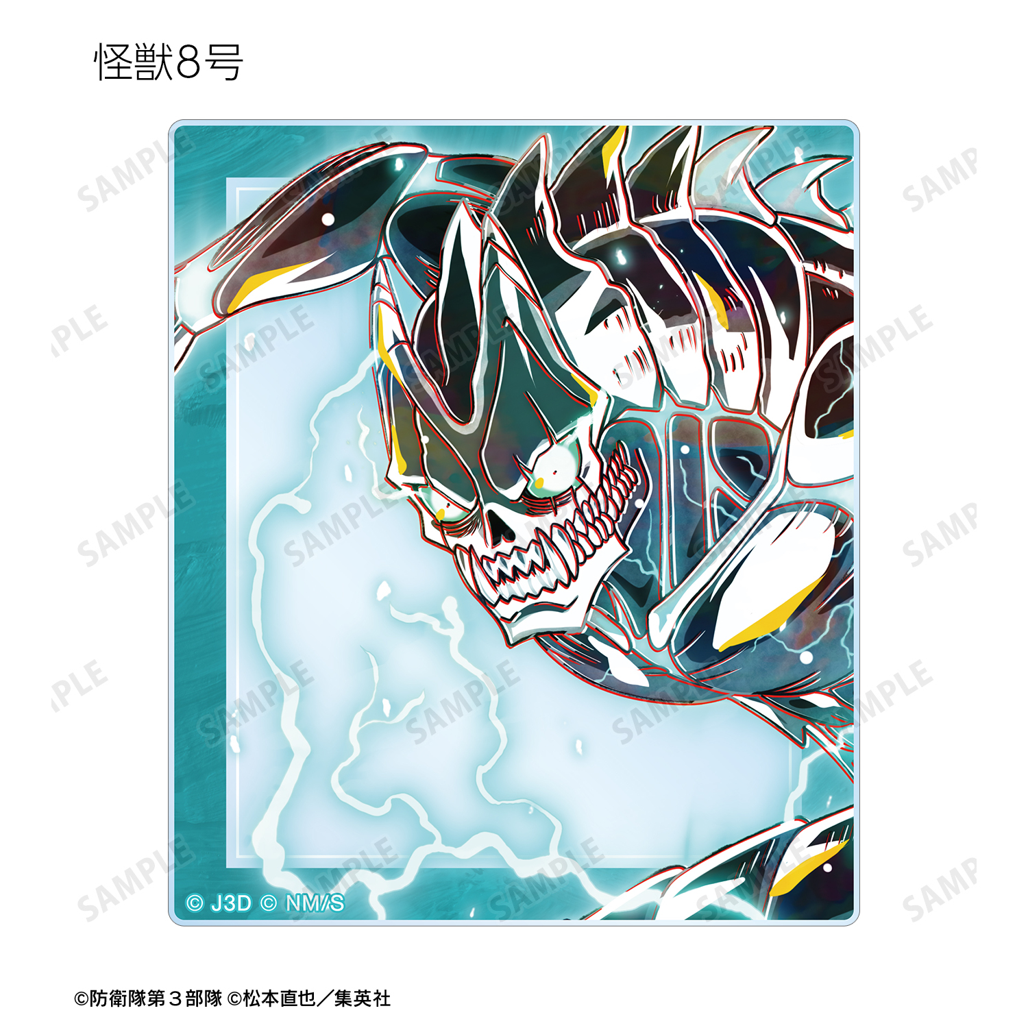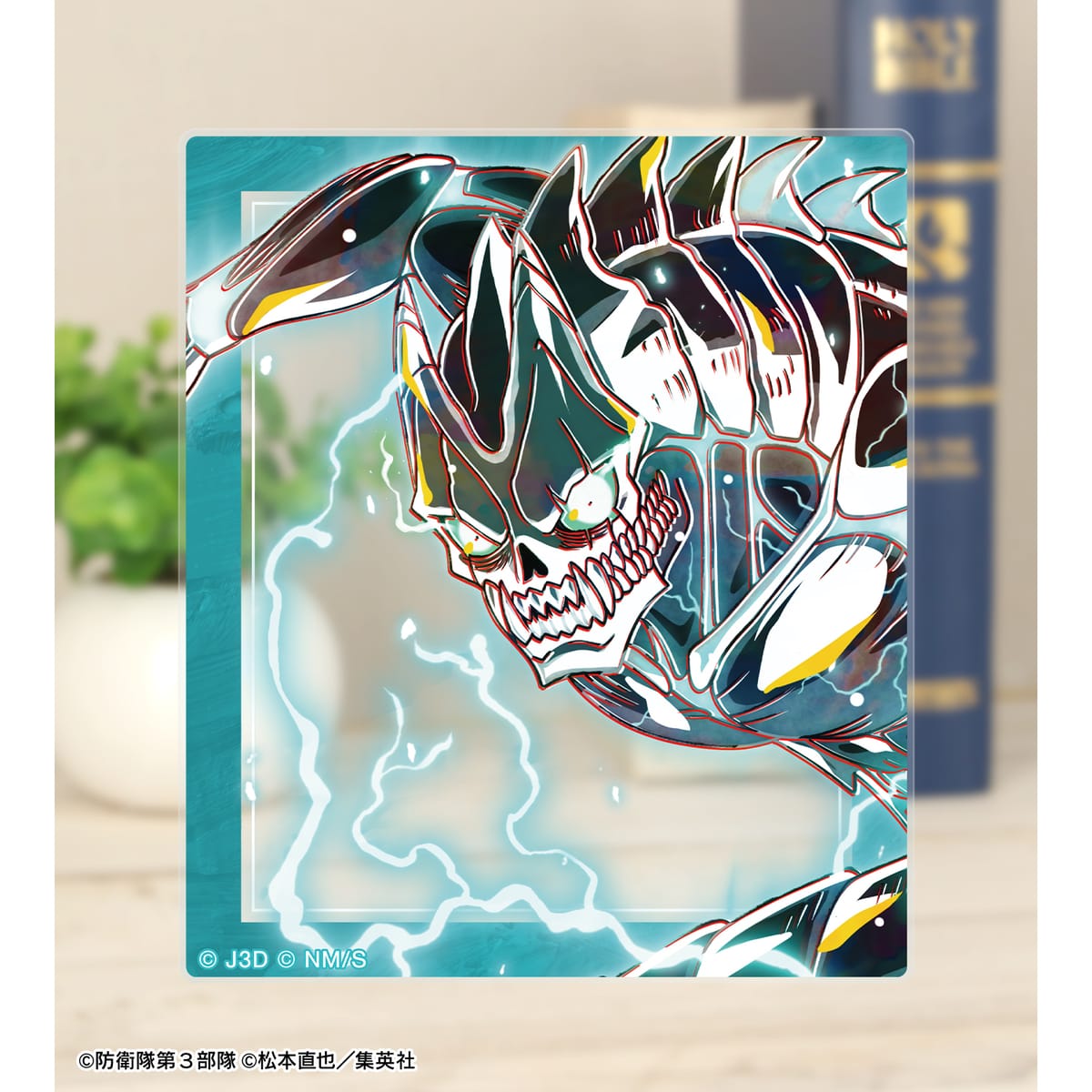 怪獣8号、日比野カフカ、市川レノ、四ノ宮キコル、亜白ミナ、保科宗四郎、鳴海弦、古橋伊春、四ノ宮功、怪獣9号のイラストを新たなタッチで魅力的に表現し、アクリルカードに仕上げました。