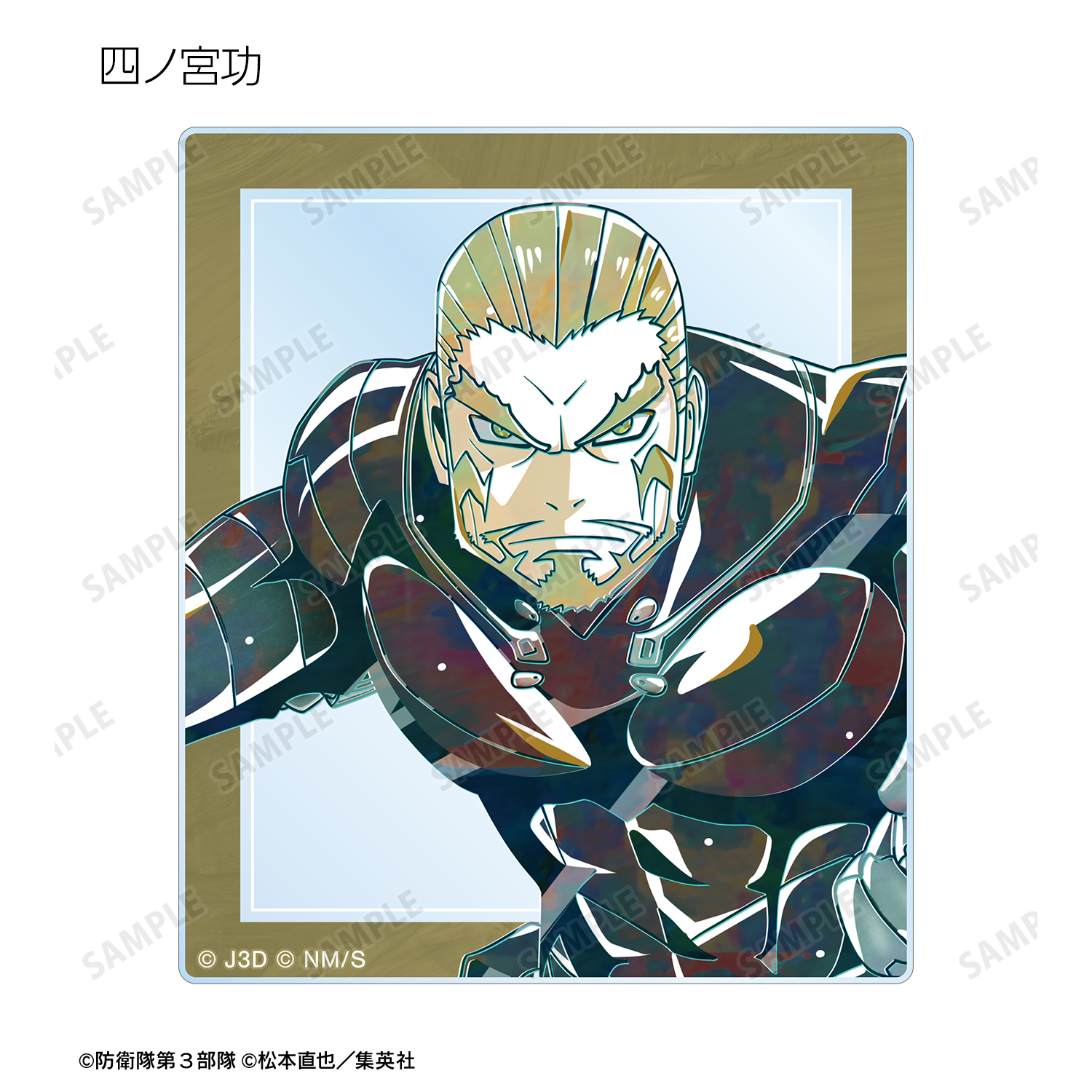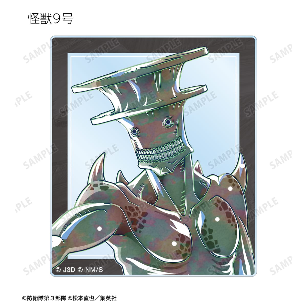 怪獣8号、日比野カフカ、市川レノ、四ノ宮キコル、亜白ミナ、保科宗四郎、鳴海弦、古橋伊春、四ノ宮功、怪獣9号のイラストを新たなタッチで魅力的に表現し、アクリルカードに仕上げました。