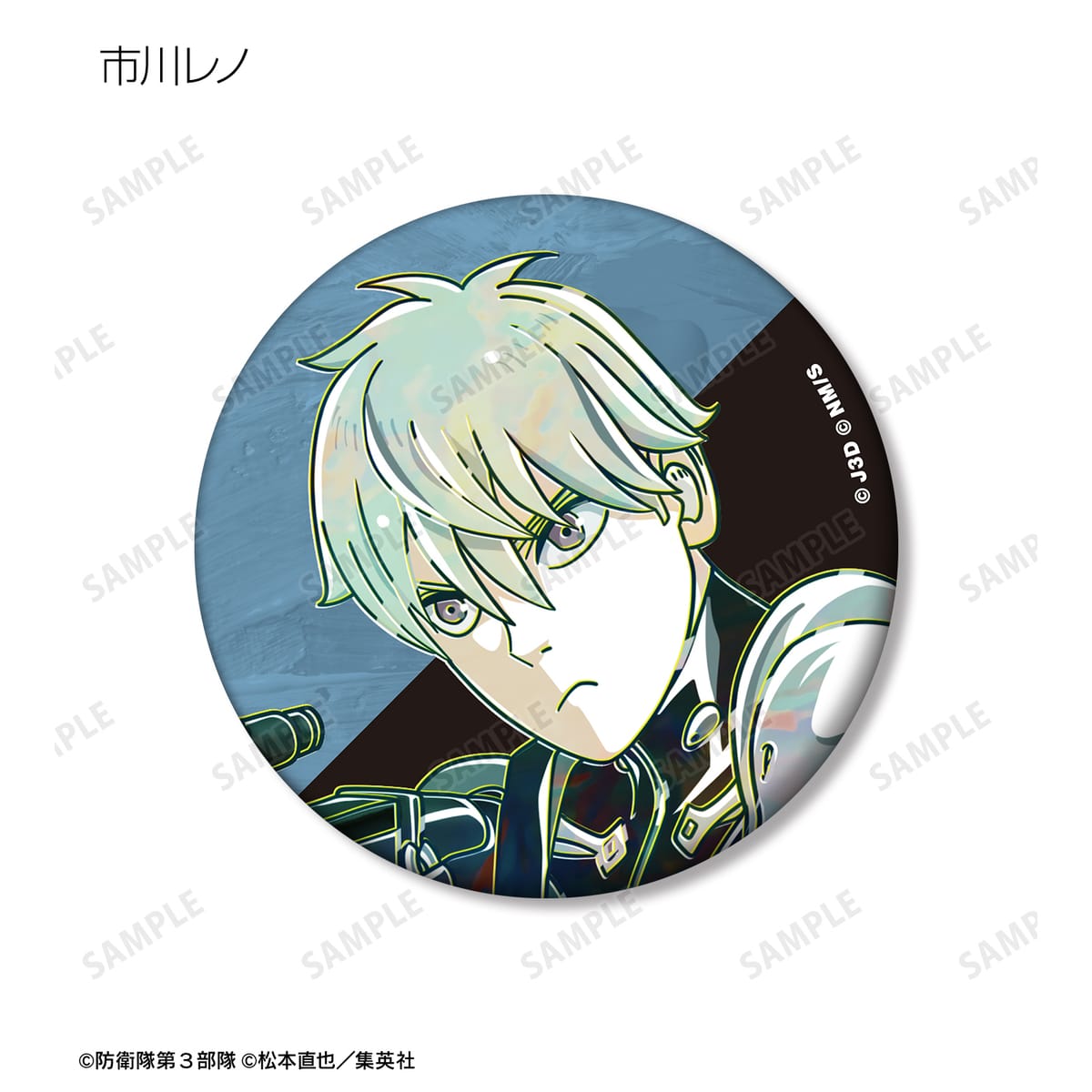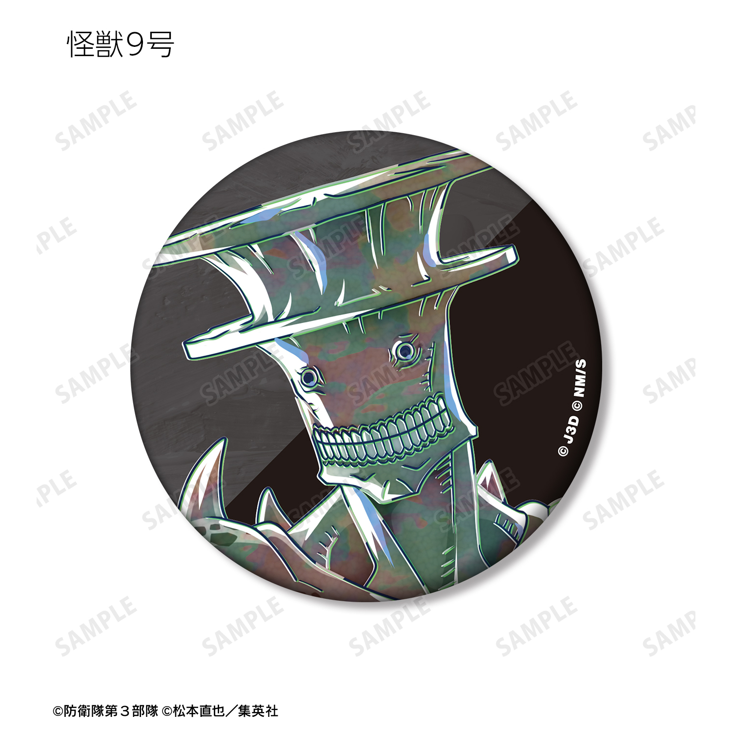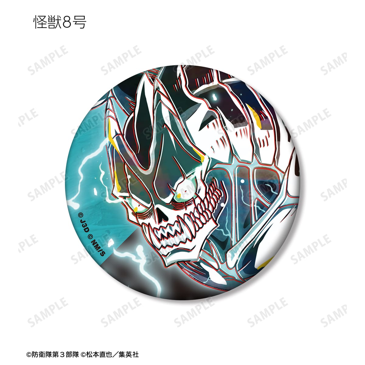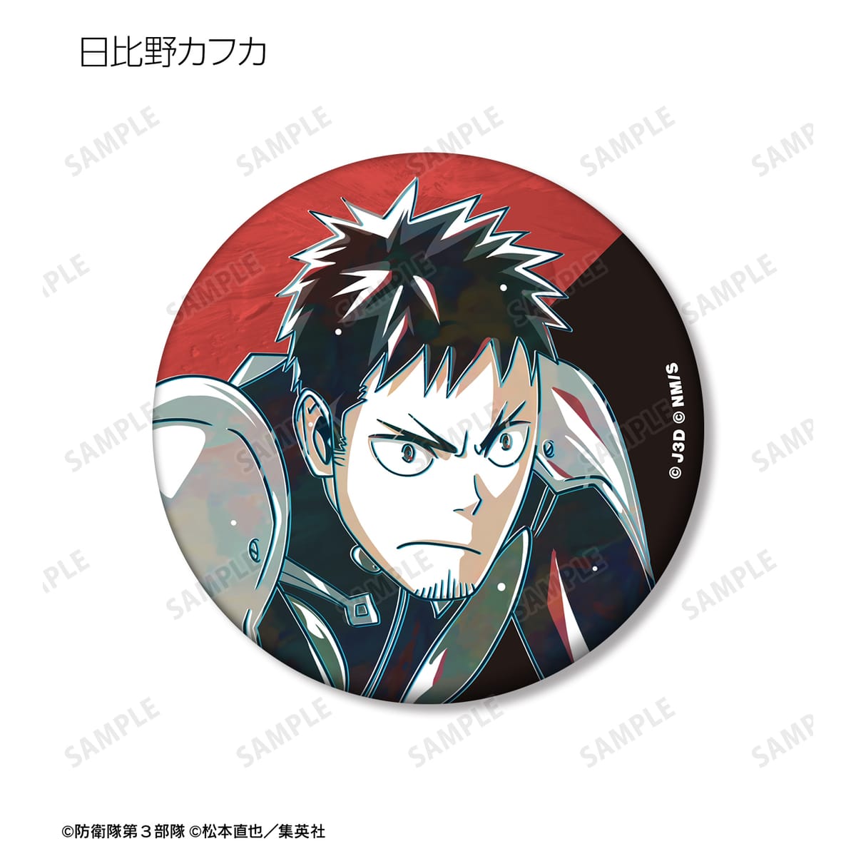 怪獣8号、日比野カフカ、市川レノ、四ノ宮キコル、亜白ミナ、保科宗四郎、鳴海弦、古橋伊春、四ノ宮功、怪獣9号のイラストを新たなタッチで魅力的に表現し、マットな手触りの缶バッジに仕上げました。