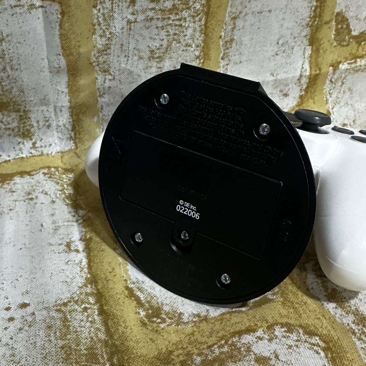 ■シンボリックな三角形、円、四角、Xの記号を再現し、スタンドのPSロゴボタンを押すとコントローラーのボディが白く点灯します