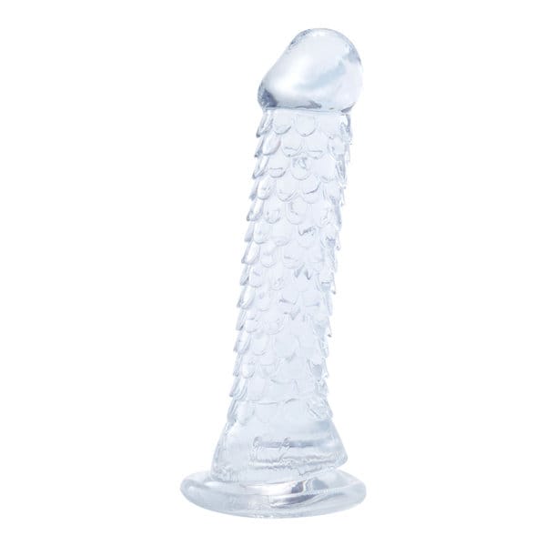 みちのくシリーズより表面の鱗状の突起が特徴的な新ディルドが登場!今までにはない形状が生み出す、新たな刺激の自信作です。この『みちのく鱗』は表面にびっしりと敷き詰められた鱗状の突起が自慢です。再現するのに試行錯誤を繰り返し、ようやく完成に至った鱗。しっかりとした"返し"があり、それが抜き出す際にゾワゾワとする様な感触を生み出します。全てを掻き出す様なこの感触は、すべてのディルドユーザーに試していただきたい逸品です。また質感にもこだわり、やや柔らかく柔軟性のある素材を採用。ソフトで優しい弾力ながら、刺激力はしっかりと維持しました。通常のみちのくシリーズよりも柔らかくソフトですが、より洗練された感触をお楽しみください。底部には強力な吸盤を装備し、遊び方は自由自在。クリアで美しいカラーも魅力的な一本です。みちのくシリーズの新境地を開く新たなディルド。職人が本気で開発に挑んだ、魅惑の本格ディルドです。