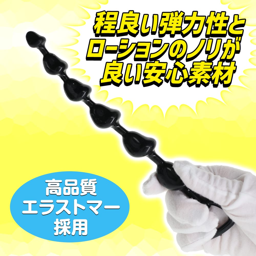 大人気シリーズ【直列6亀〇】が使いやすくお手軽なラバービーズタイプで登場!挿入時の抵抗が少ないのにしっかりと引っかかり刺激が楽しめる実用性抜群の亀〇形状の6連撃はそのままに、柔らかくローションのノリの良い高品質TPE素材を採用してより気軽にアナポコ快感が味わえます。少しずつ大きくなっていく亀〇ビーズ刺激は球体とは全然違う快感を演出します。