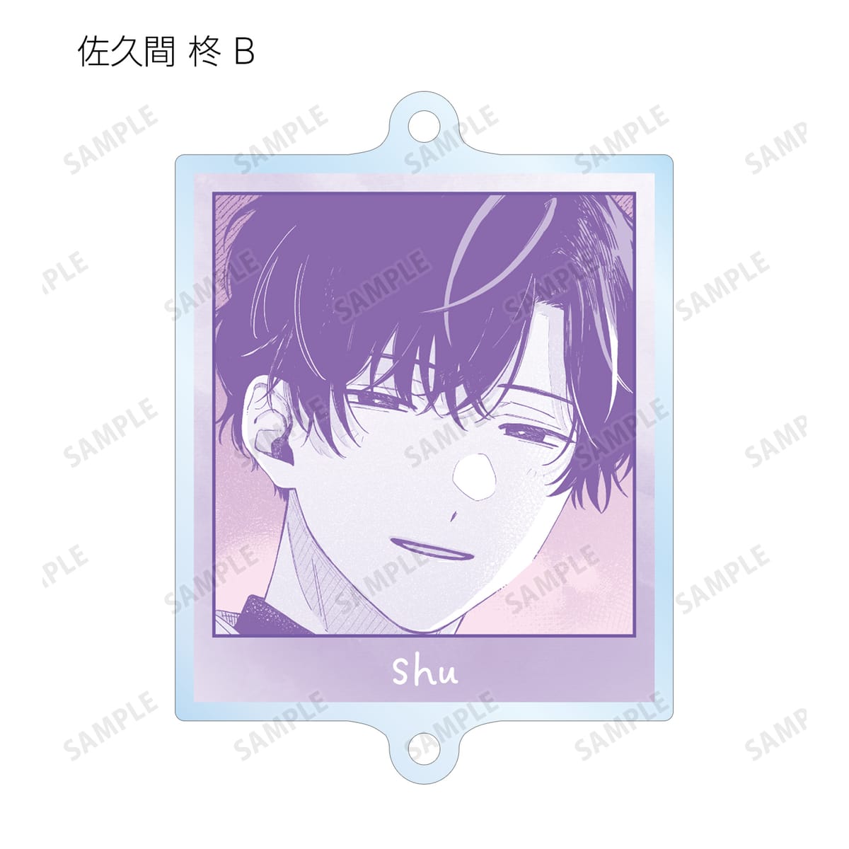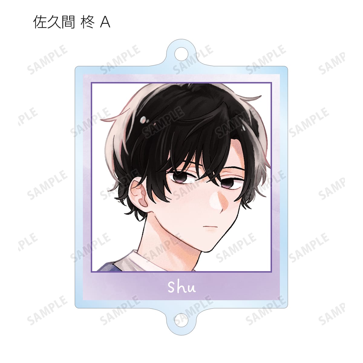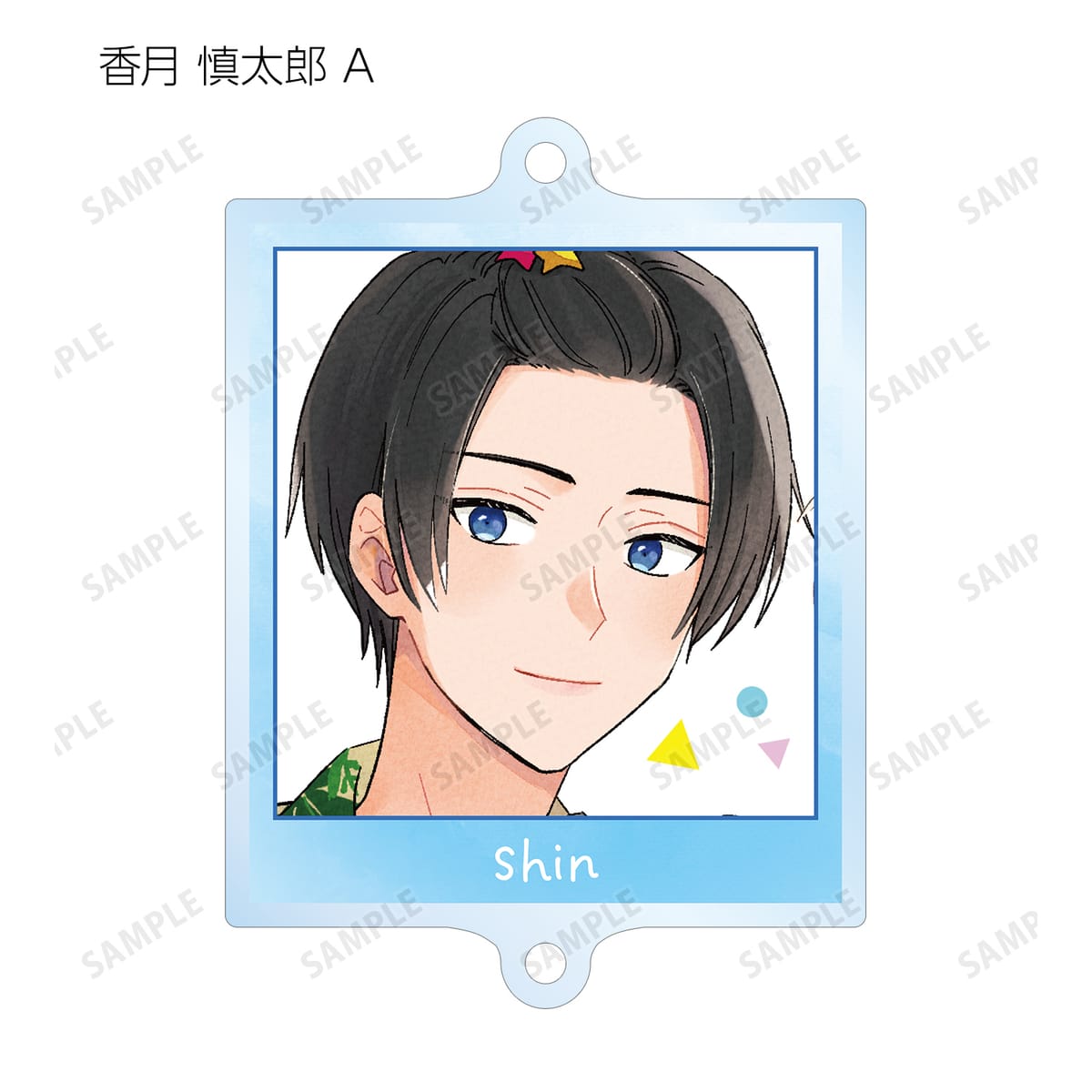 湊 晃、香月 慎太郎、英 明日香、佐久間 柊のカラーイラスト、原作コマをカニカンとマルカンでつなげることのできるアクリルキーホルダーに仕上げました。