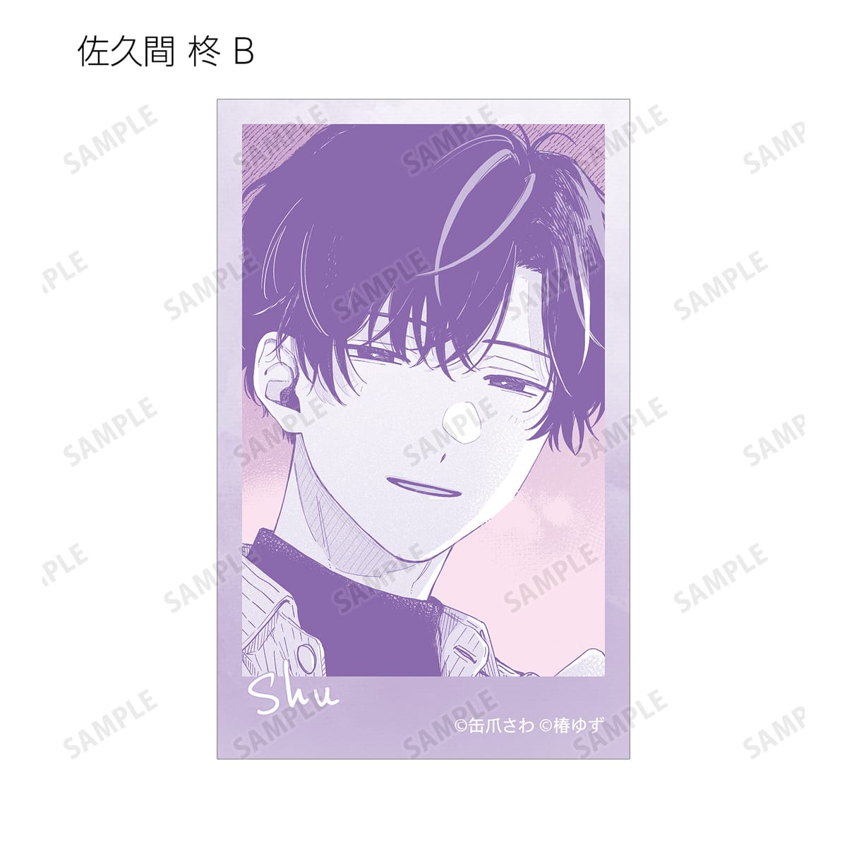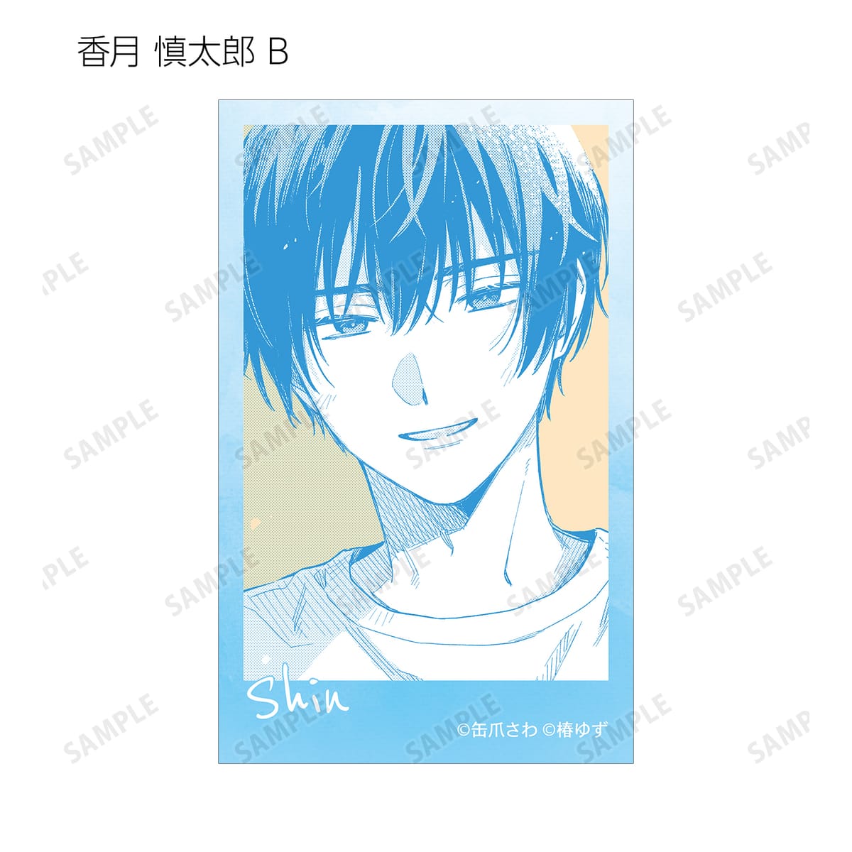 湊 晃、香月 慎太郎、英 明日香、佐久間 柊のカラーイラスト、原作コマをインスタントカメラ風のイラストカードに仕上げました。