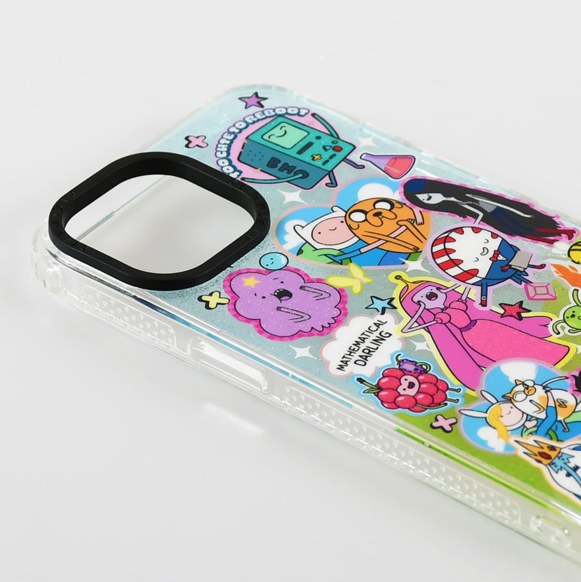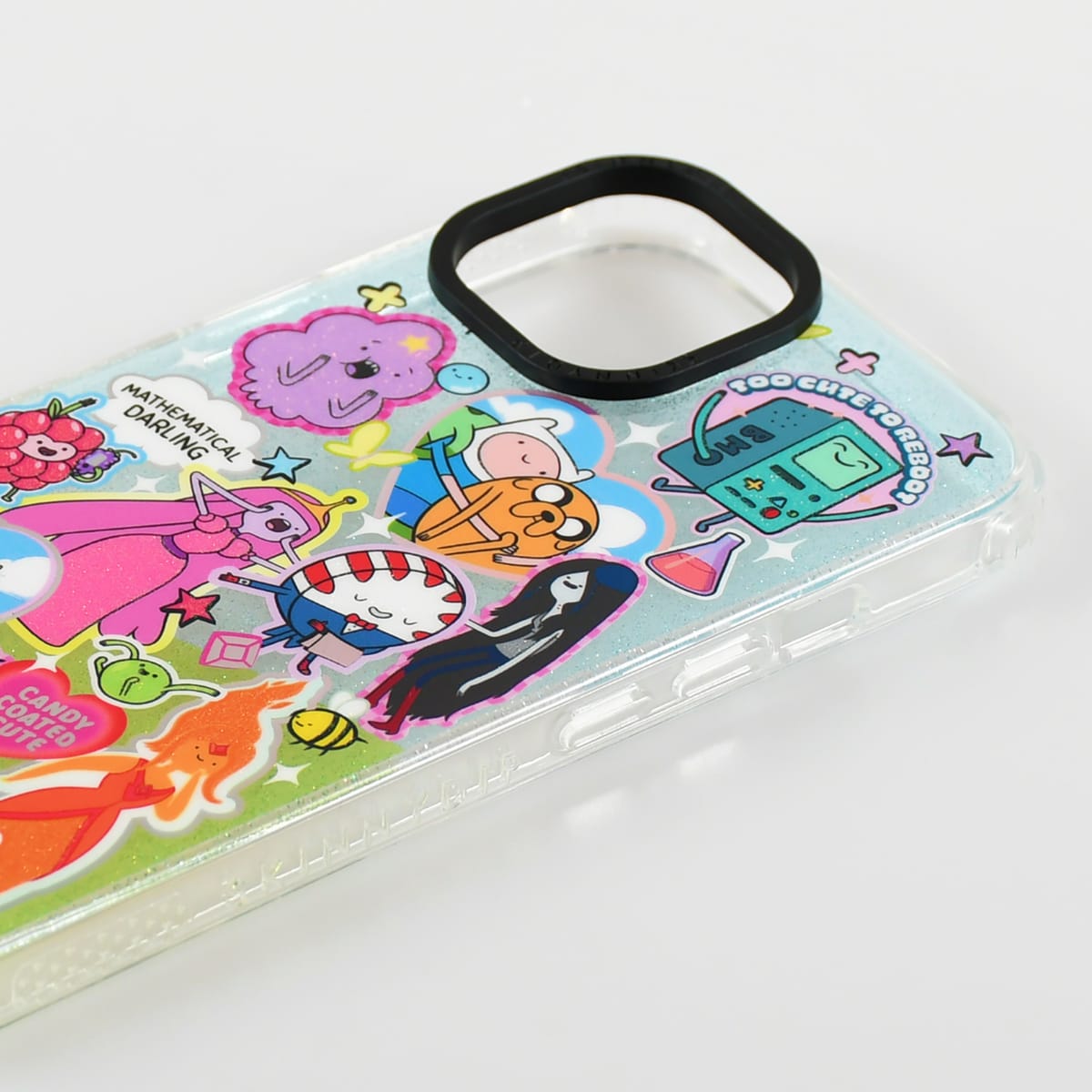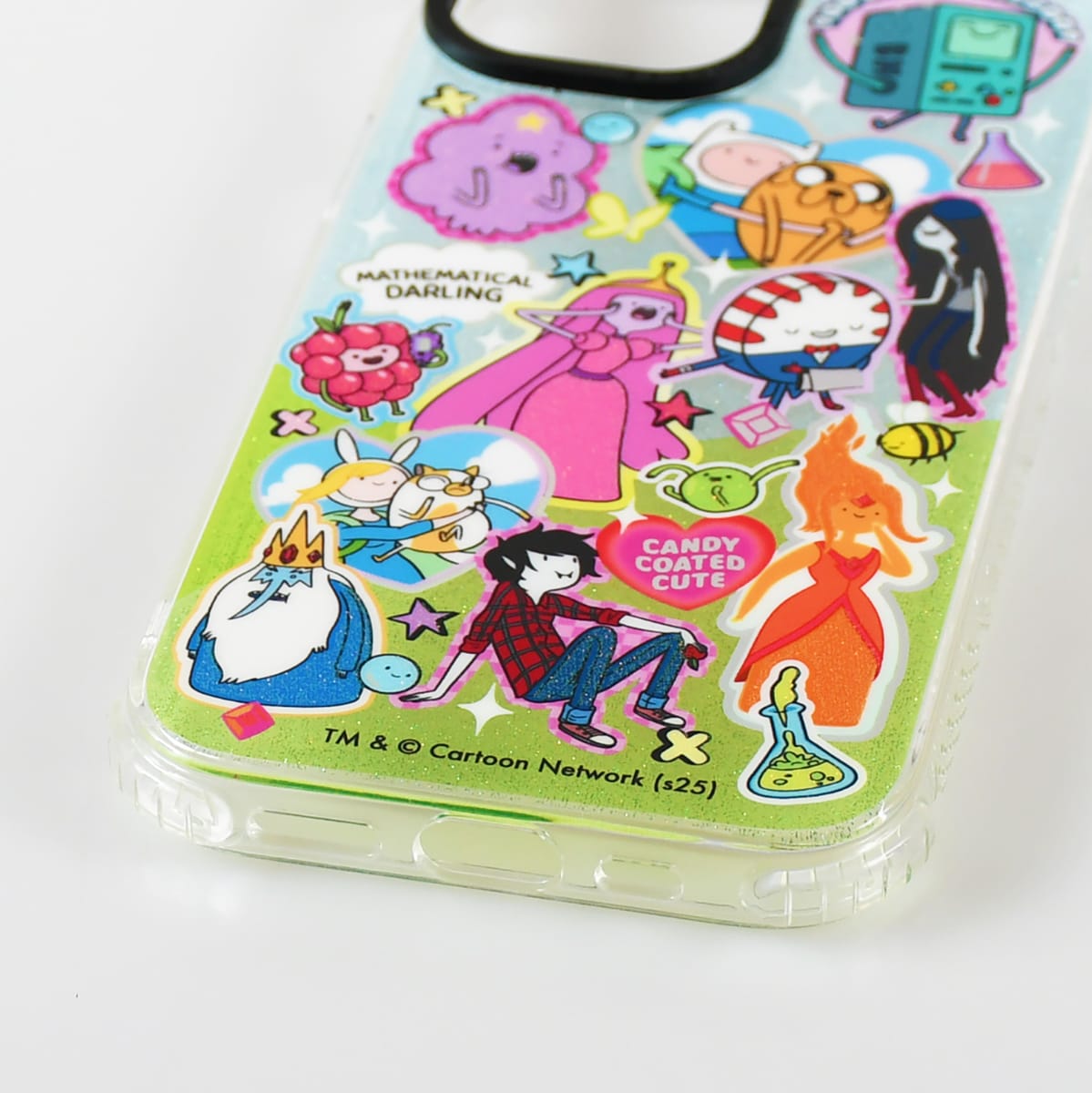 アドベンチャー・タイムのキャラクターたちが勢ぞろいした、Y2K感あふれるデザイン。