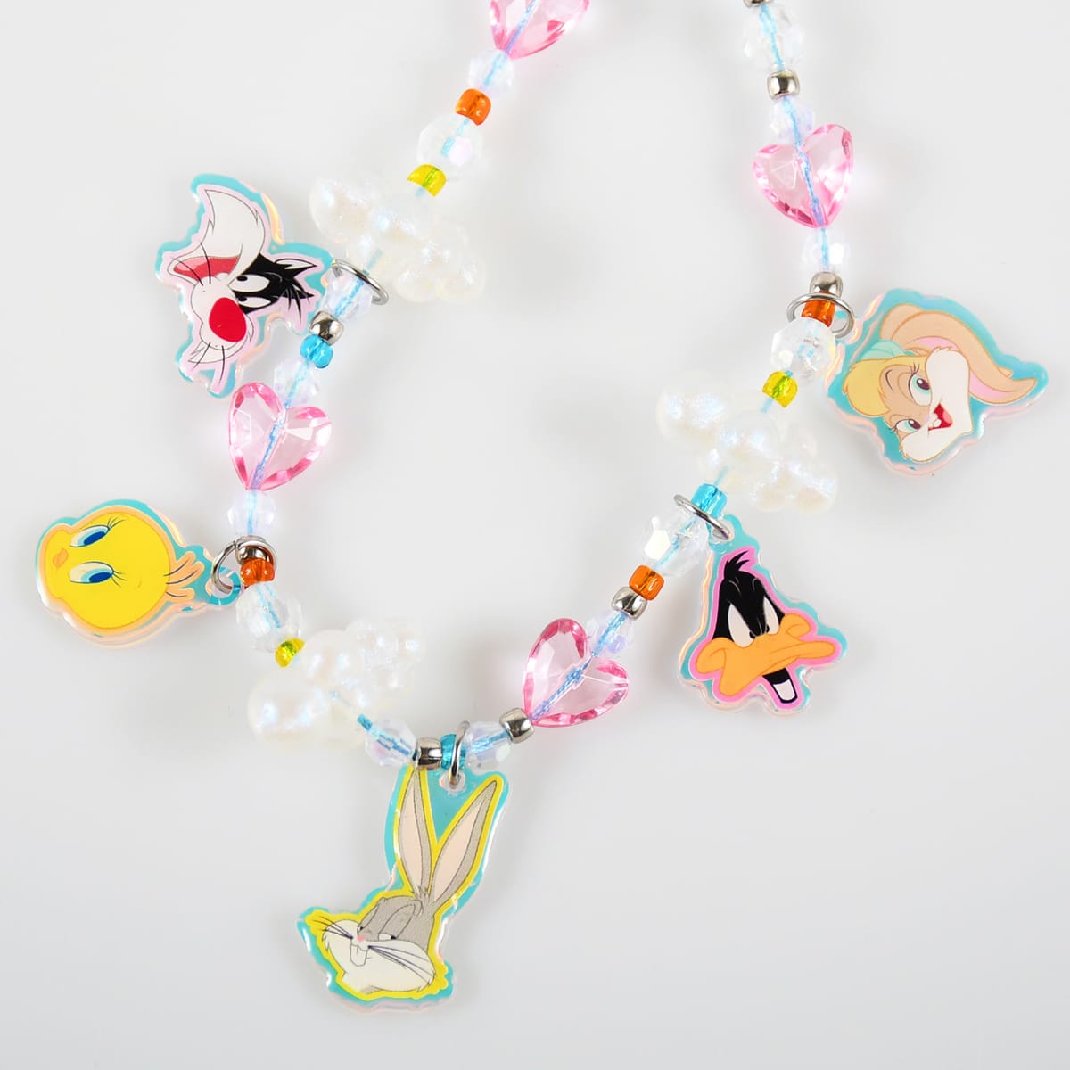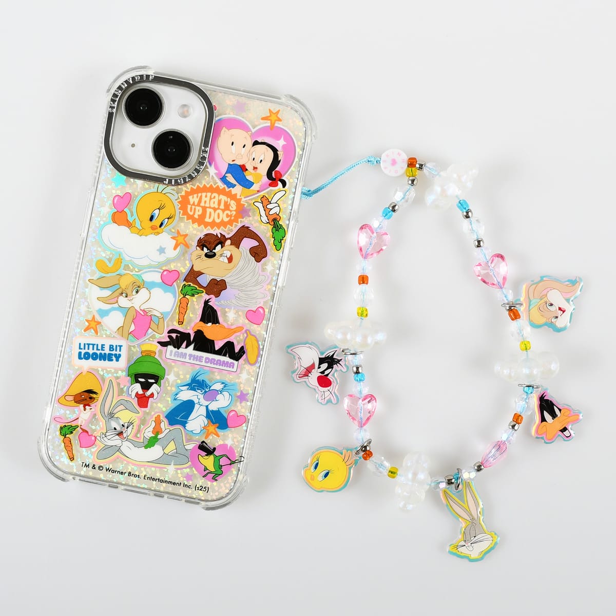ルーニー・テューンズのキャラクターチャームとクリアパーツを組み合わせたキュートなデザイン。