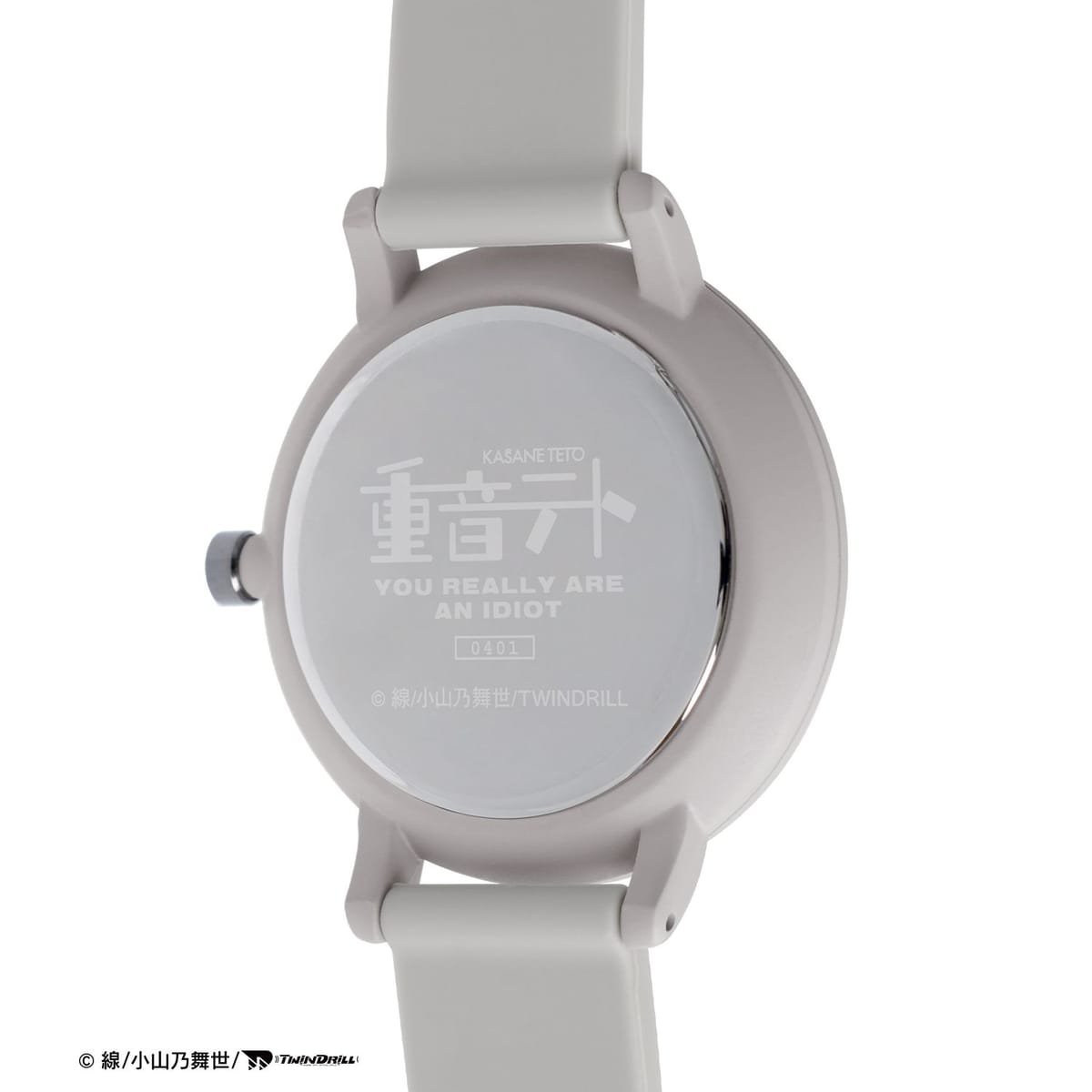 裏蓋には、重音テトのロゴや誕生日に加え、決め台詞の「君はじつに馬鹿だな」の英題表記「YOU REALLY ARE AN IDIOT」を刻印しています。