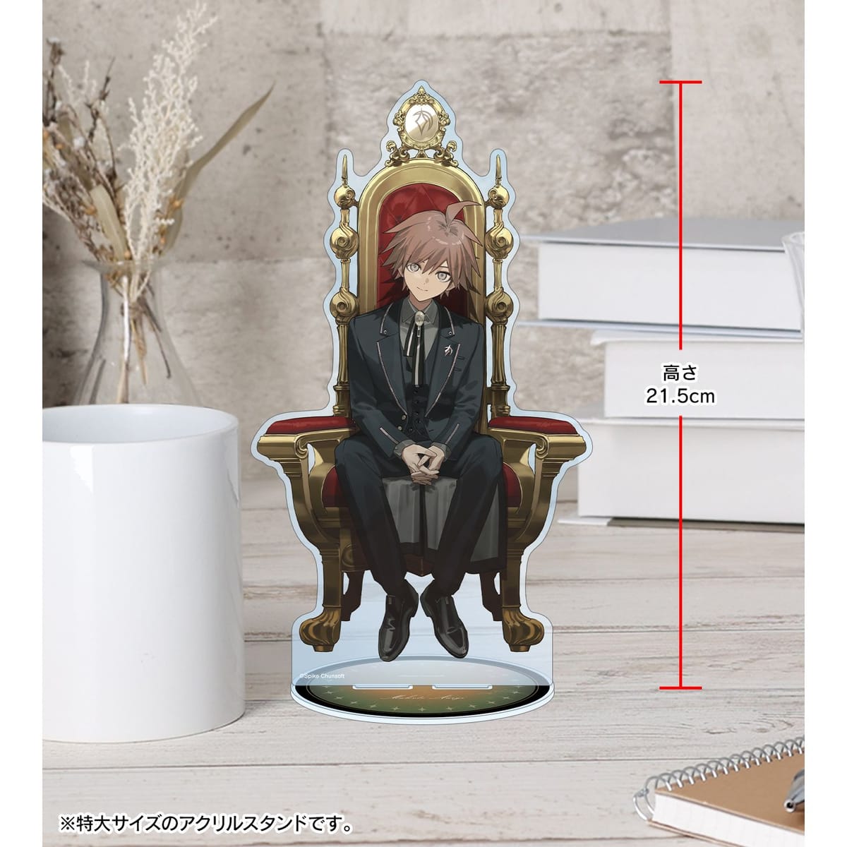 『ダンガンロンパシリーズ』×「およ」のコラボレーションアイテム「およさんイラスト 苗木誠 玉座ver. 特大アクリルスタンド」の登場です。