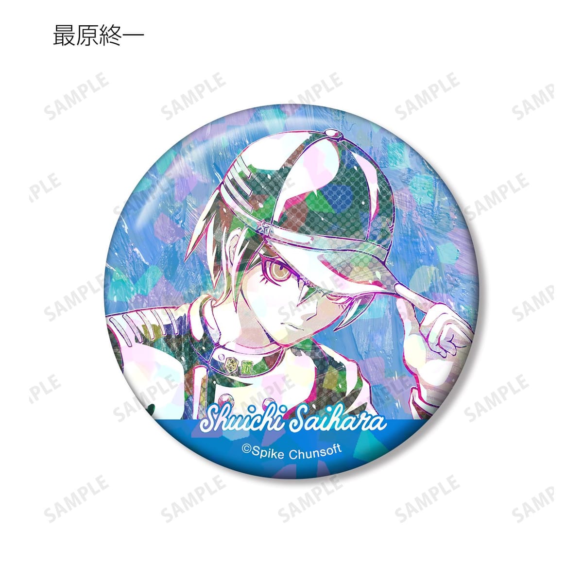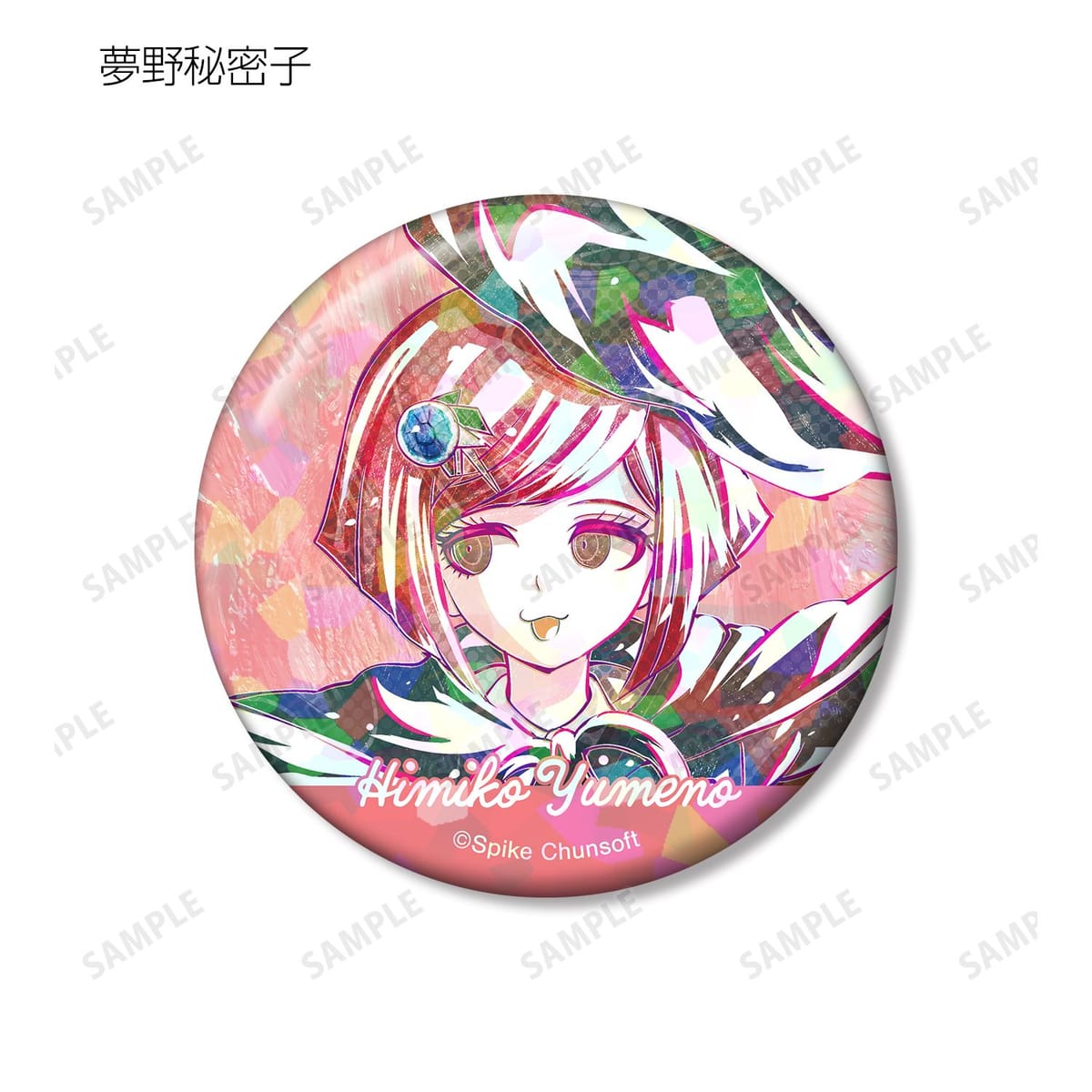 赤松楓、キーボ、最原終一、真宮寺是清、春川魔姫、星竜馬、夢野秘密子、夜長アンジーのイラストを新たなタッチで魅力的に表現し、ホログラム加工を施した缶バッジに仕上げました。