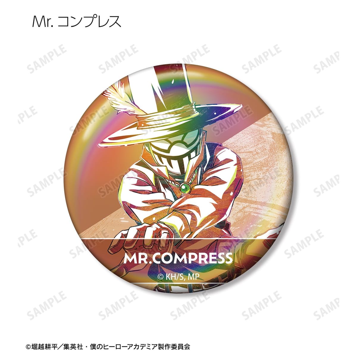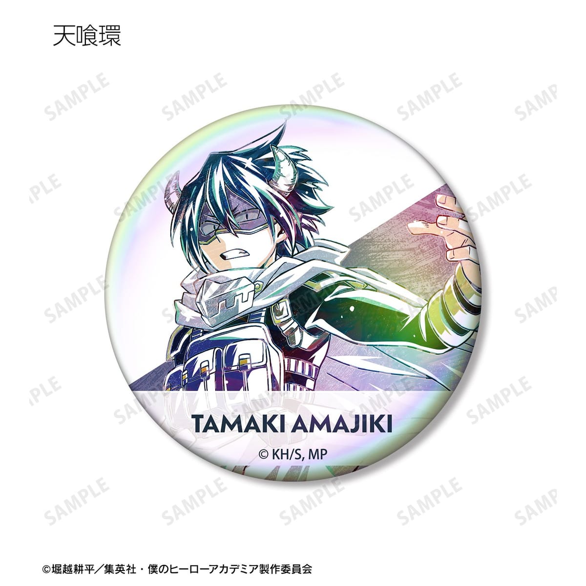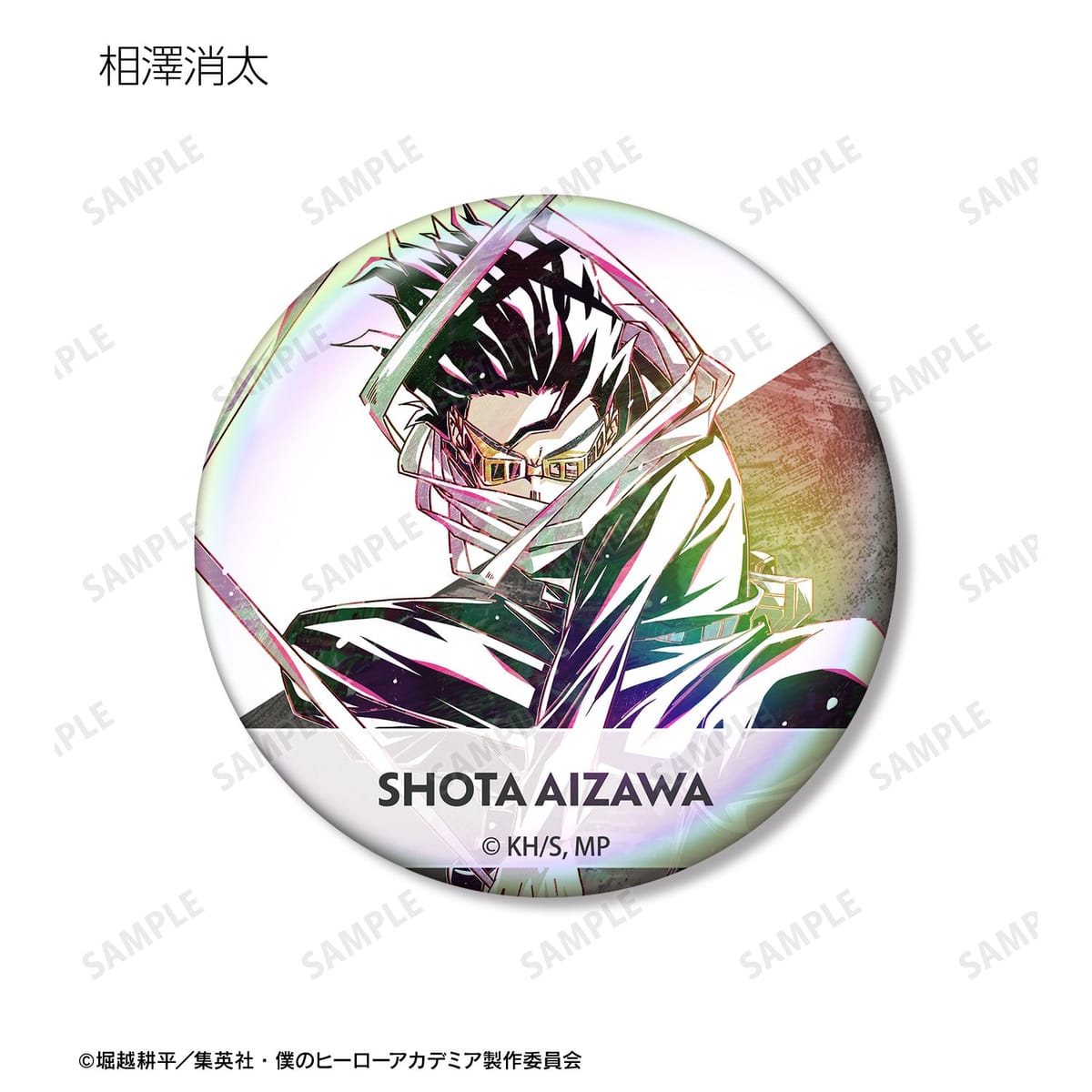 爆豪勝己、飯田天哉、塩崎茨、角取ポニー、天喰環、相澤消太、ベストジーニスト、ファットガム、トゥワイス、Mr.コンプレス、トランペット、キュリオスのビジュアルを新たなタッチで魅力的に表現し、オーロラ加工を施した缶バッジに仕上げました。
