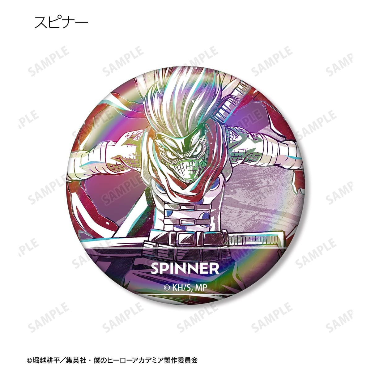 轟焦凍、上鳴電気、鉄哲徹鐵、波動ねじれ、エンデヴァー、Mt.レディ、オール・フォー・ワン、荼毘、スピナー、スケプティック、ギガントマキアのビジュアルを新たなタッチで魅力的に表現し、オーロラ加工を施した缶バッジに仕上げました。