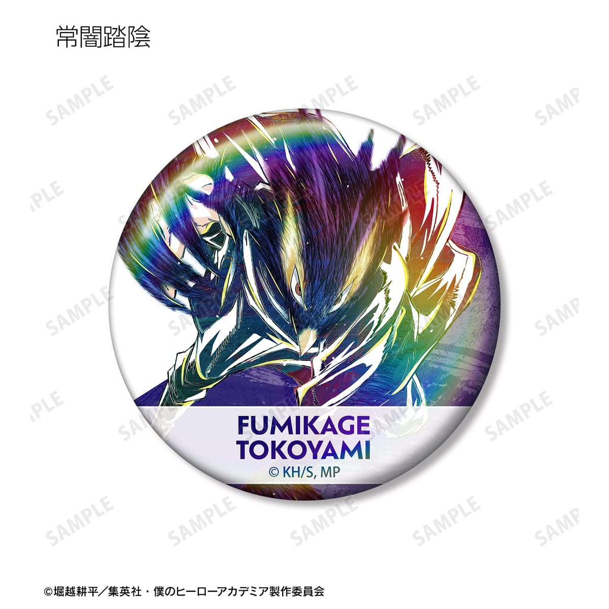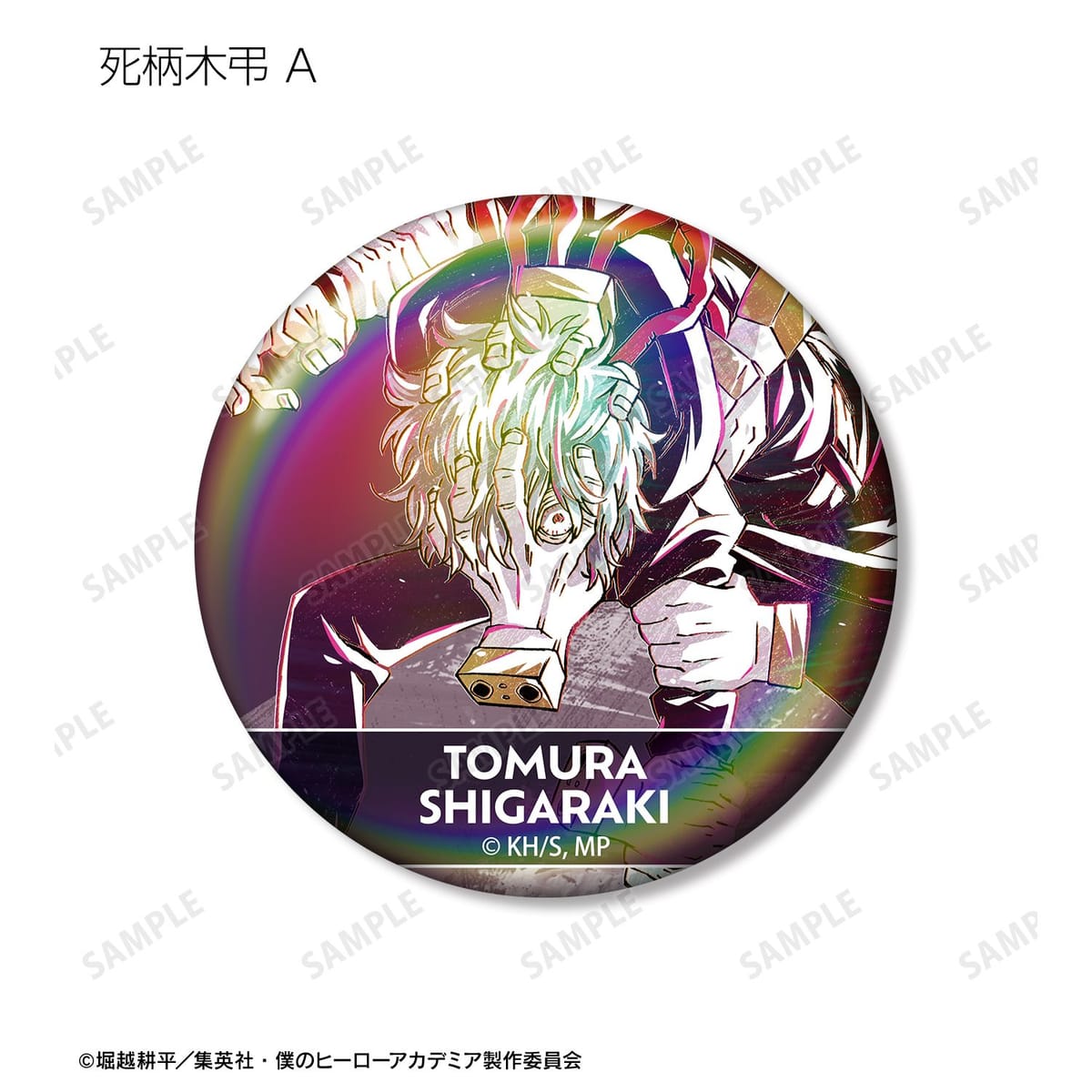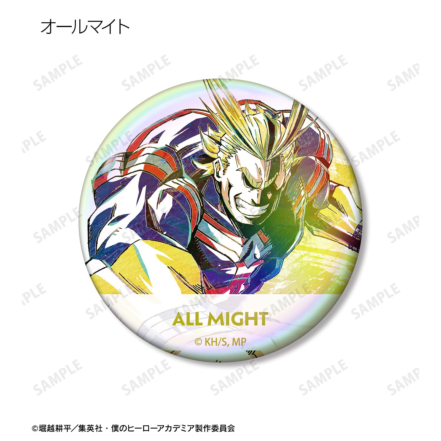 緑谷出久、麗日お茶子、蛙吹梅雨、常闇踏陰、物間寧人、拳藤一佳、オールマイト、ホークス、死柄木弔のビジュアルを新たなタッチで魅力的に表現し、オーロラ加工を施した缶バッジに仕上げました。